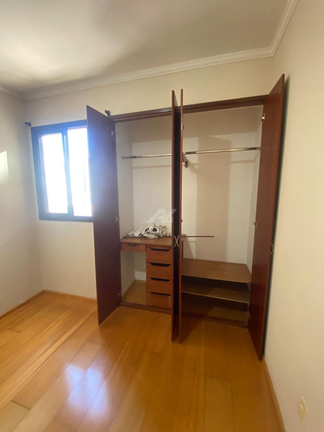 Tem armário completo no dormitório e sala e ainda conta com varanda e lavabo/banheiro social.