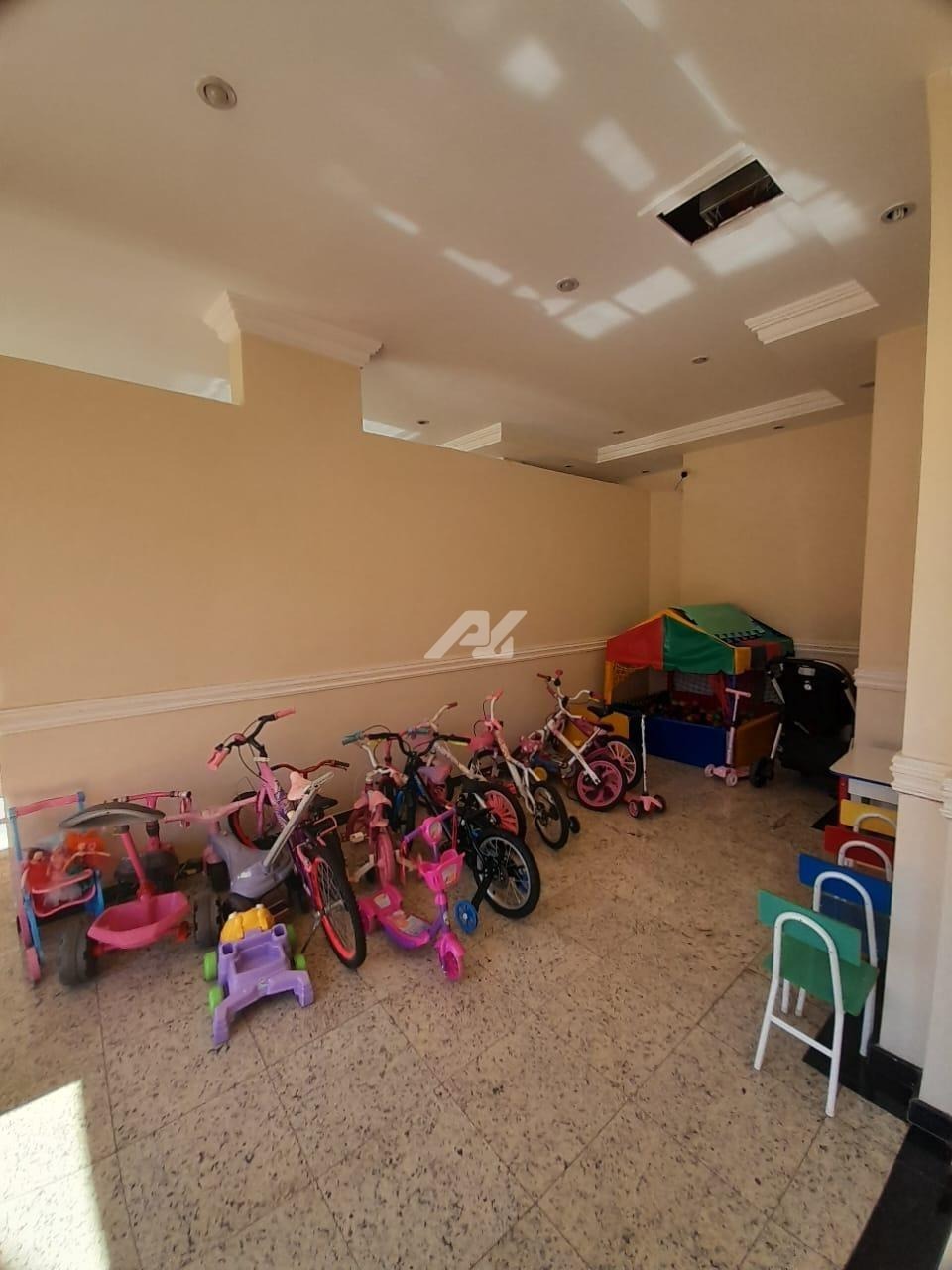 Tem 2 vagas , 2 quartos com armários embutidos, o 3º quarto é um escritório. Quadra poliesportiva, play ground, salão de festas, bicicletário.
