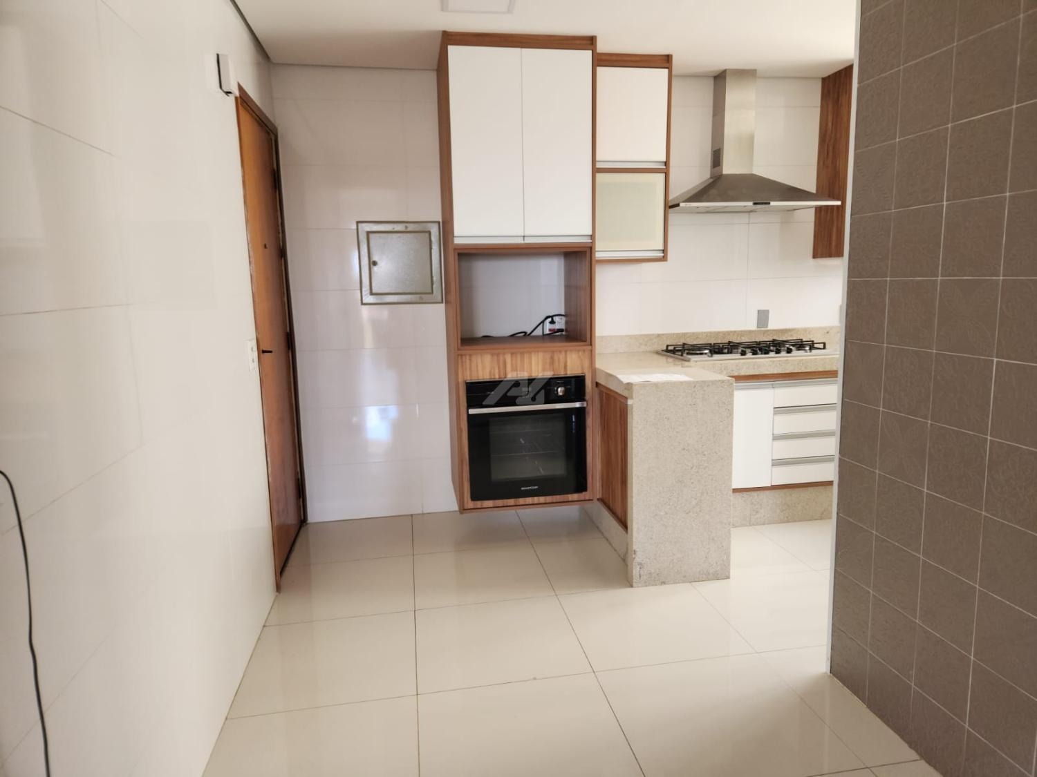 Cozinha planejada com cook top, coifa e forno embutido. Lavanderia e despensa.