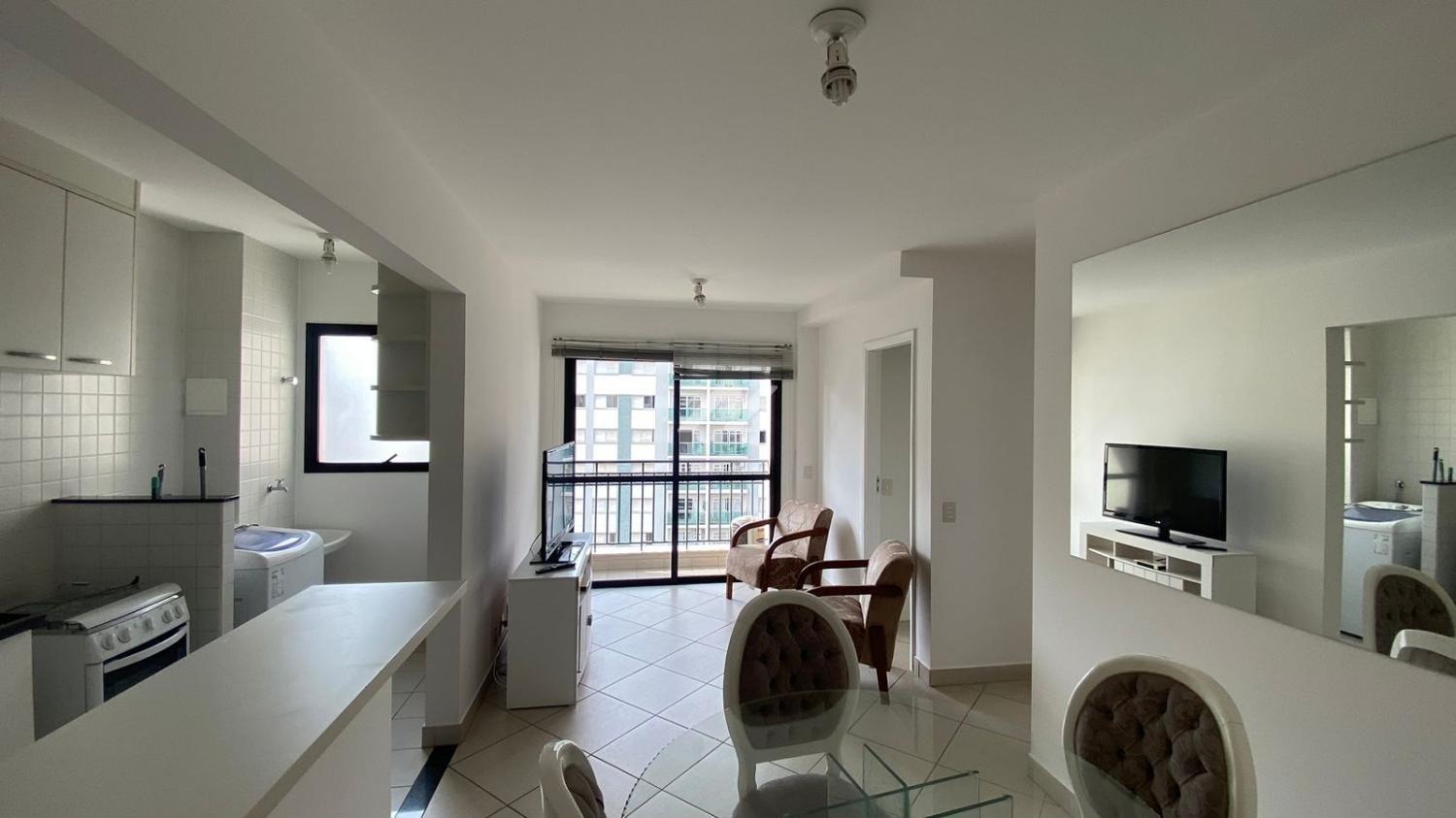 Andar alto, mobiliado, 2 quartos com armários, sala para 2 ambientes com sacada, cozinha planejada, banheiro social 2 vagas de garagem.