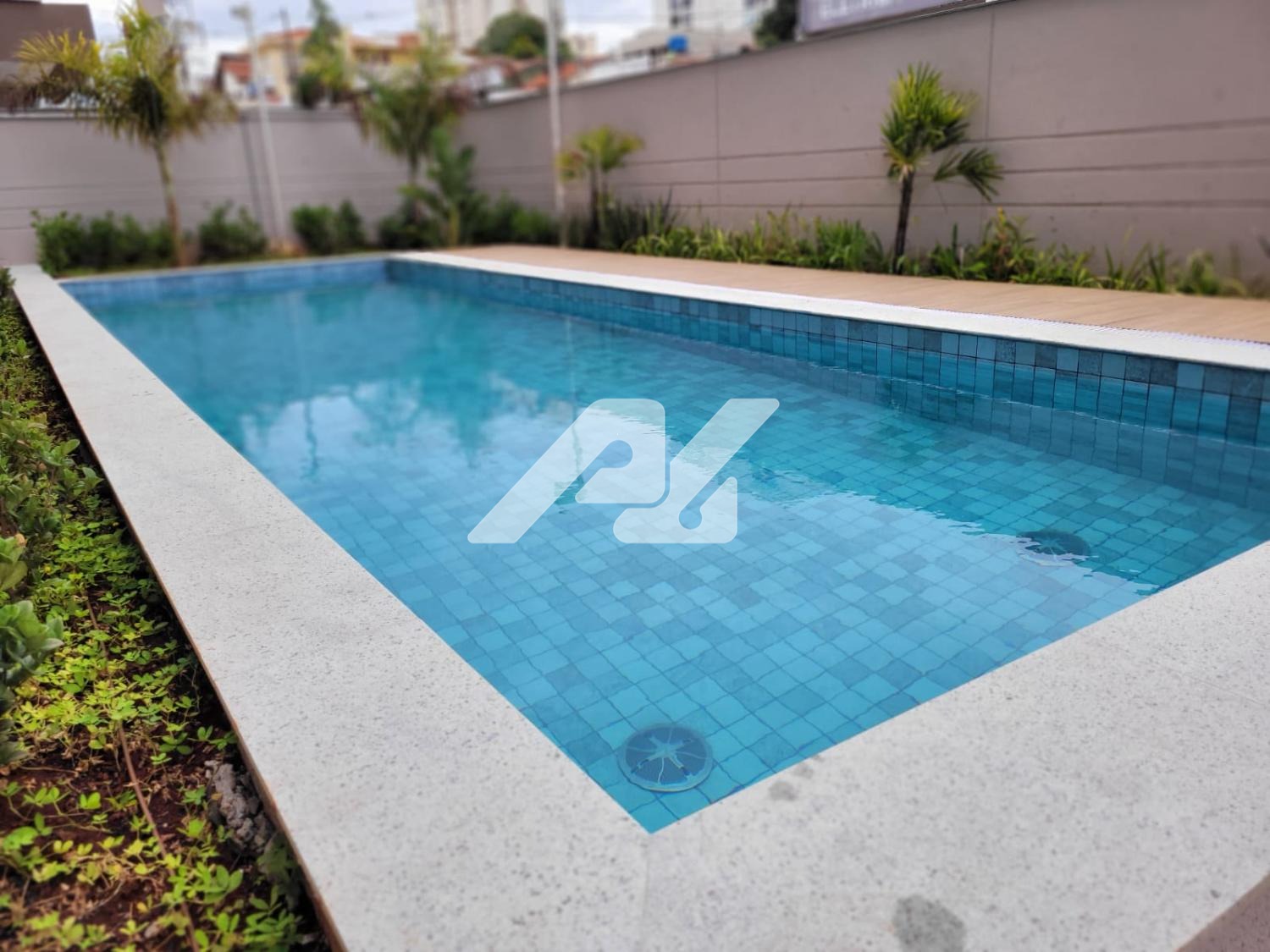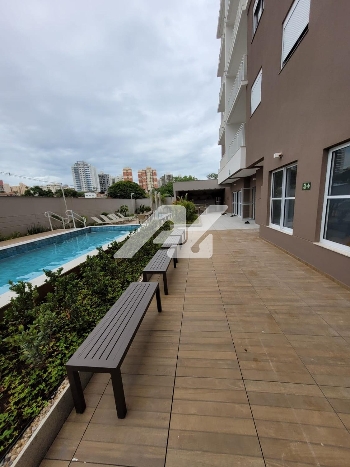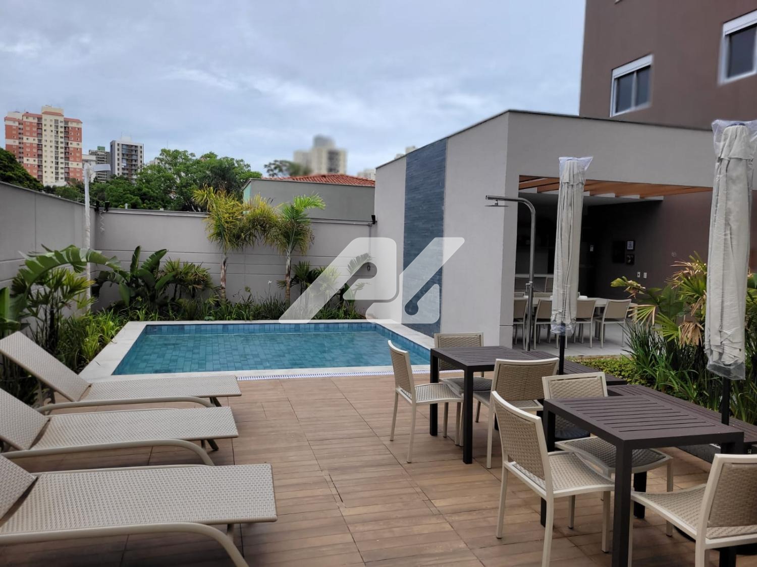 Área de lazer com piscina de adulto e infantil, separada por Deck, churrasqueira, espaço gourmet, fitness, brinquedoteca, espaço pet.
