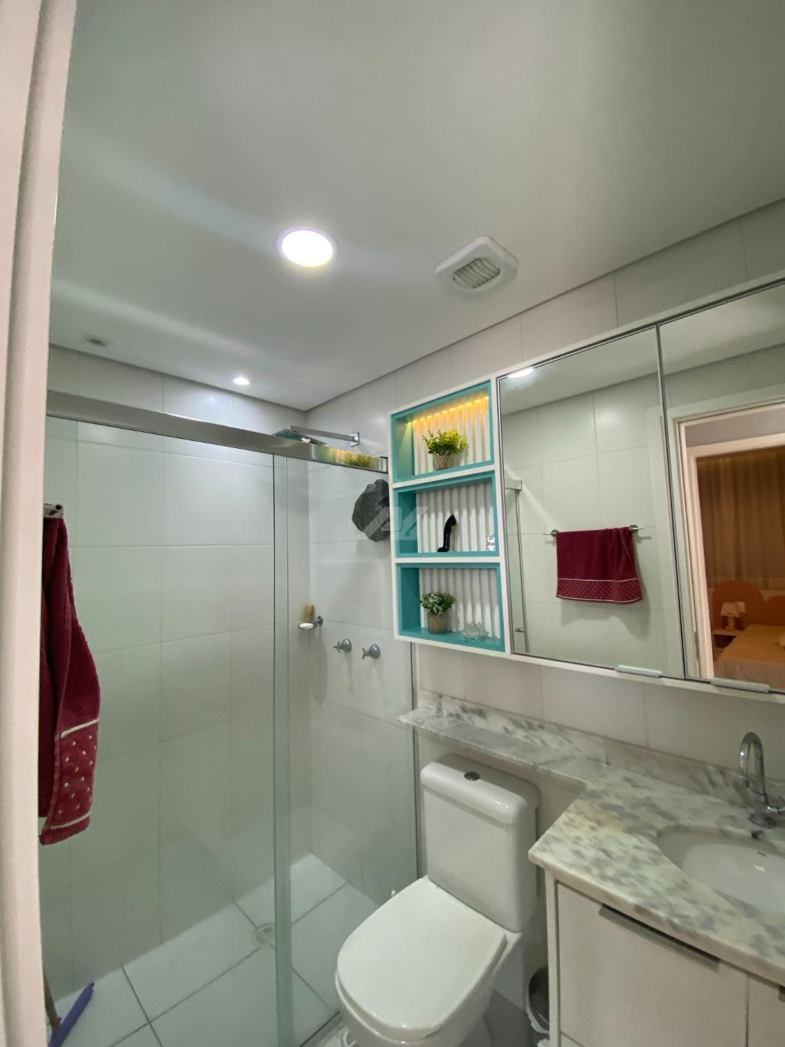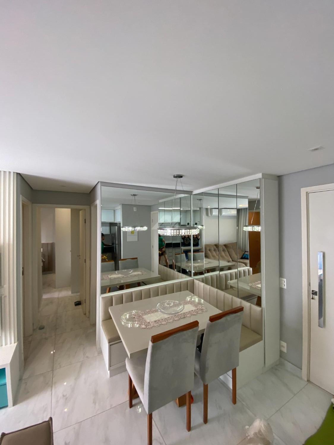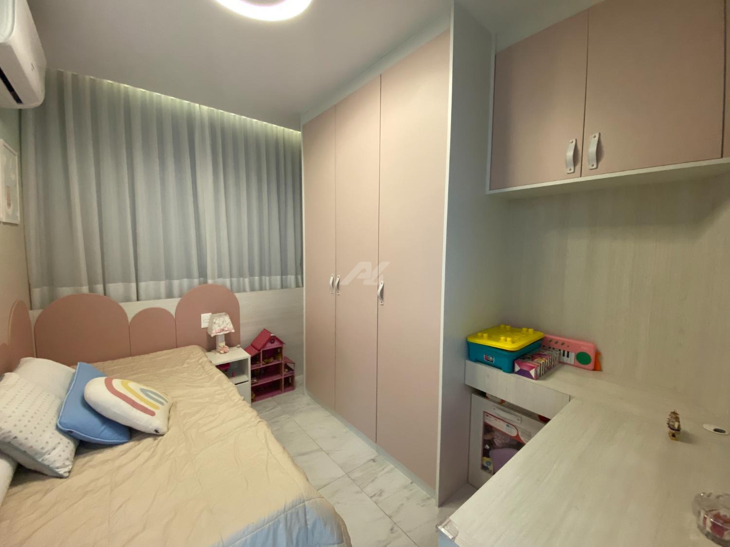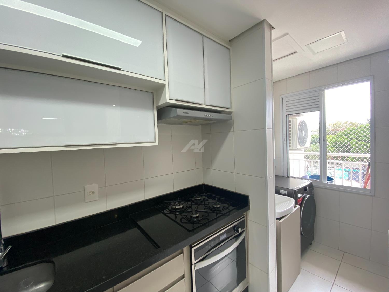 Apartamento em andar intermediário, com 2 quartos, salas com ambientes claros e ventilados, cozinha americana, acabamentos modernos, ar condicionado na salas e quarto.
