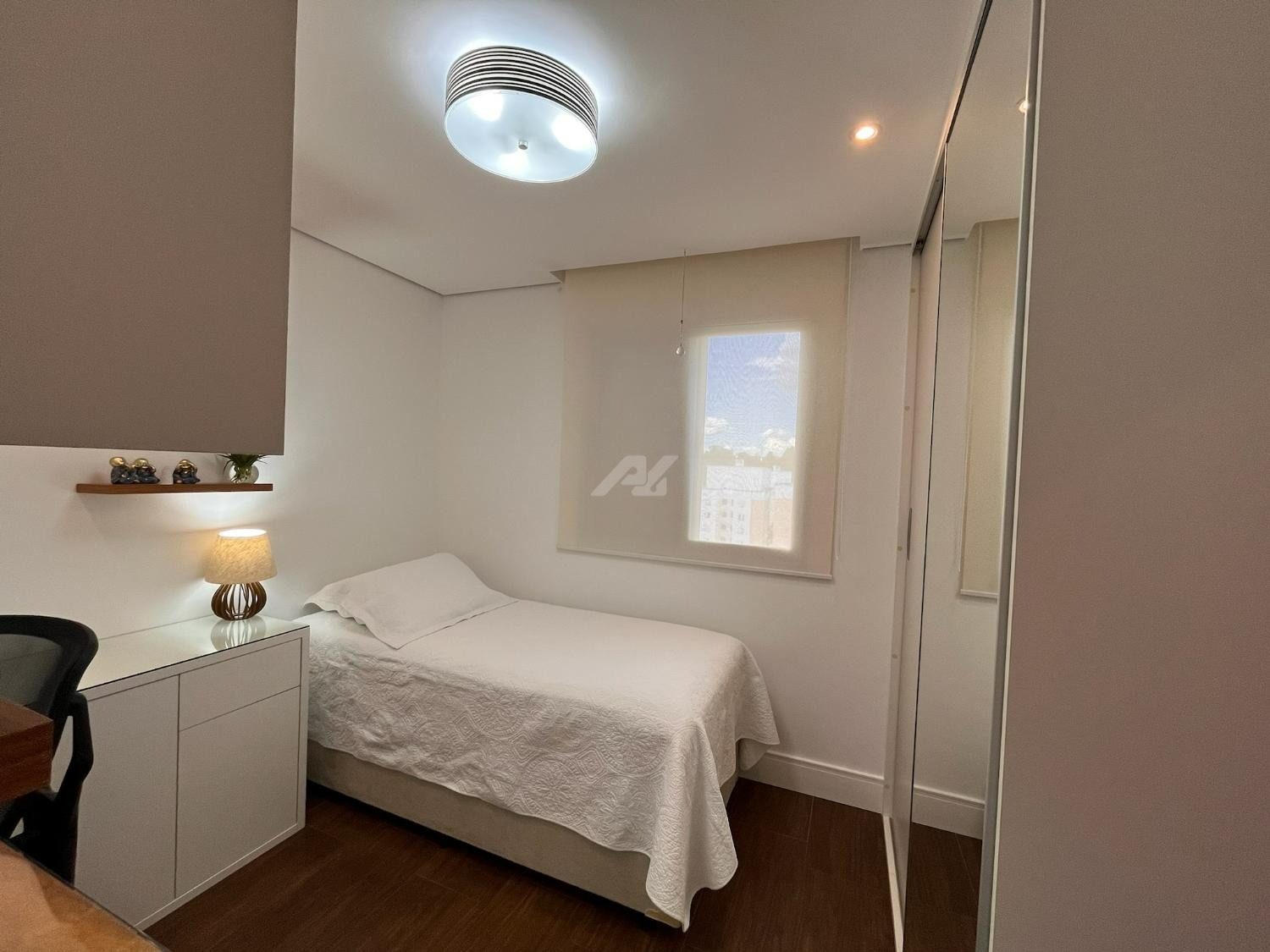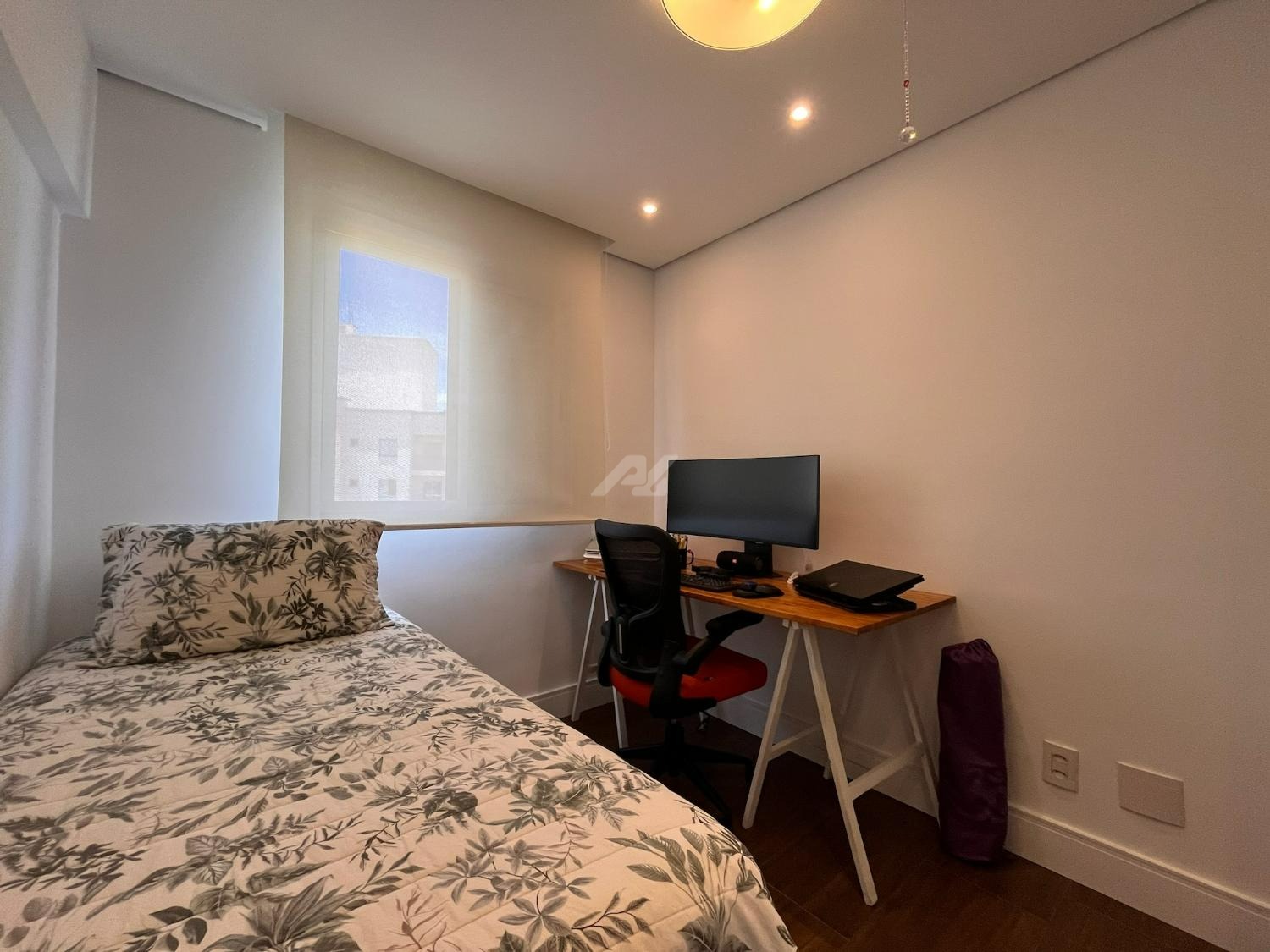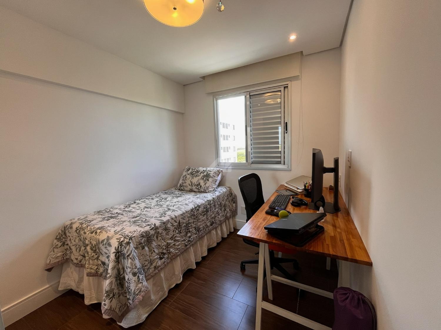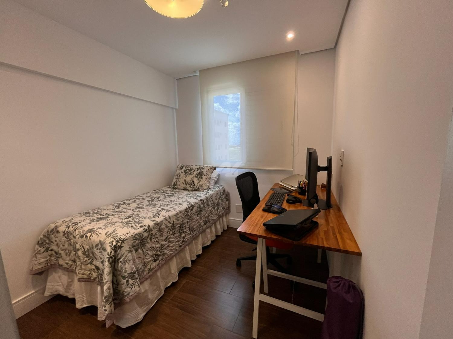 O imóvel dispõe de sistema de ar-condicionado Samsung quente e frio, com tecnologia Wind Free, garantindo conforto térmico em todas as estações. Os dormitórios possuem móveis planejados de excelente qualidade, com portas de correr, amplos espaços de armazenamento e ótimo aproveitamento interno. O dormitório principal ainda oferece um espaço dedicado para home office, com design funcional e acabamento sofisticado, podendo ser facilmente adaptado conforme a necessidade do novo proprietário.
