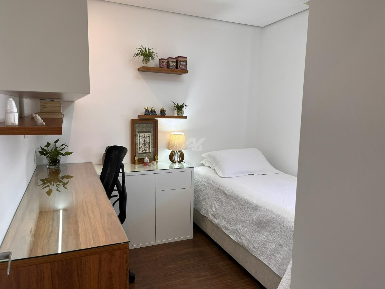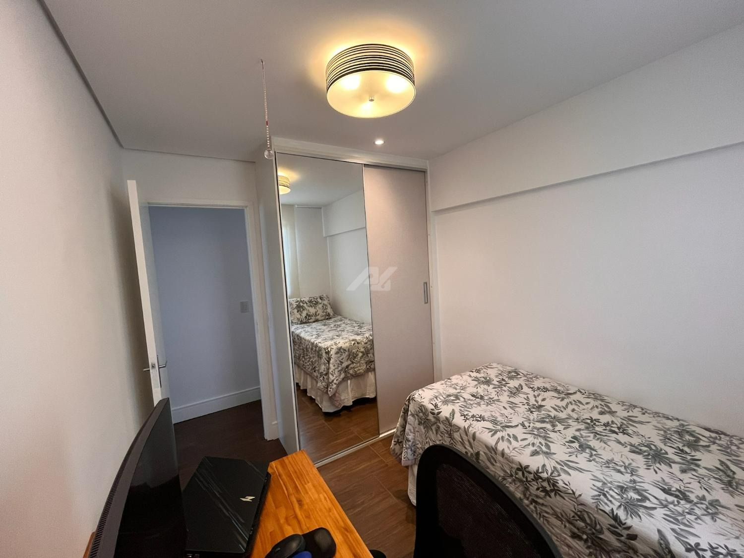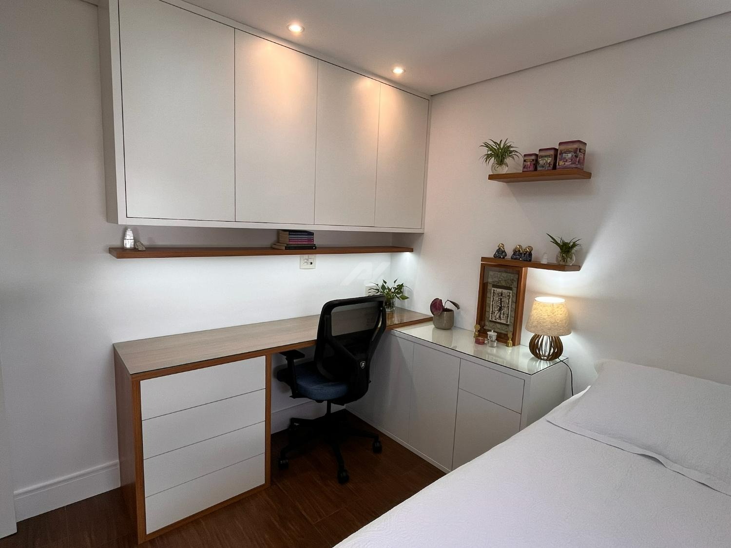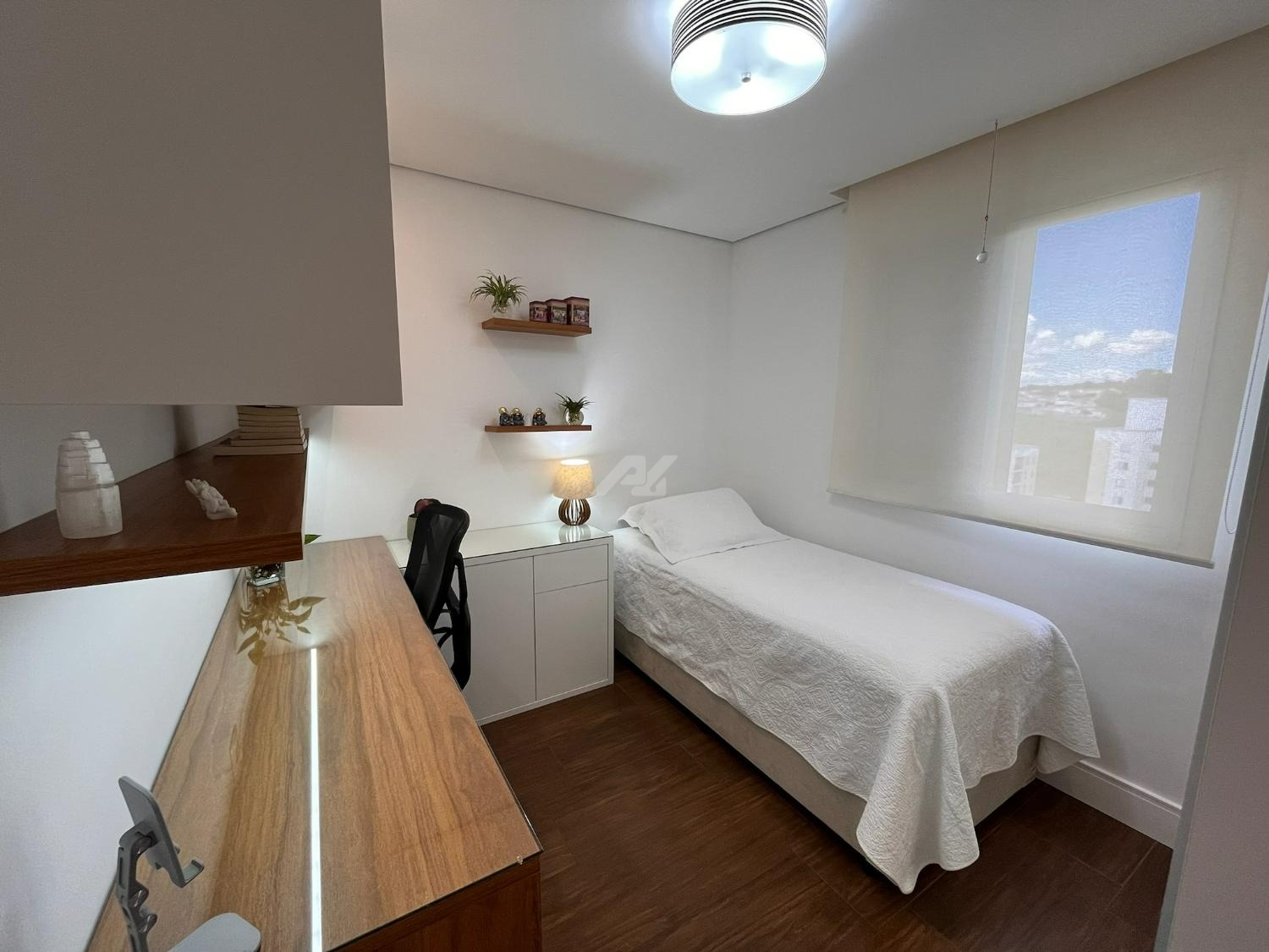 O imóvel dispõe de sistema de ar-condicionado Samsung quente e frio, com tecnologia Wind Free, garantindo conforto térmico em todas as estações. Os dormitórios possuem móveis planejados de excelente qualidade, com portas de correr, amplos espaços de armazenamento e ótimo aproveitamento interno. O dormitório principal ainda oferece um espaço dedicado para home office, com design funcional e acabamento sofisticado, podendo ser facilmente adaptado conforme a necessidade do novo proprietário.