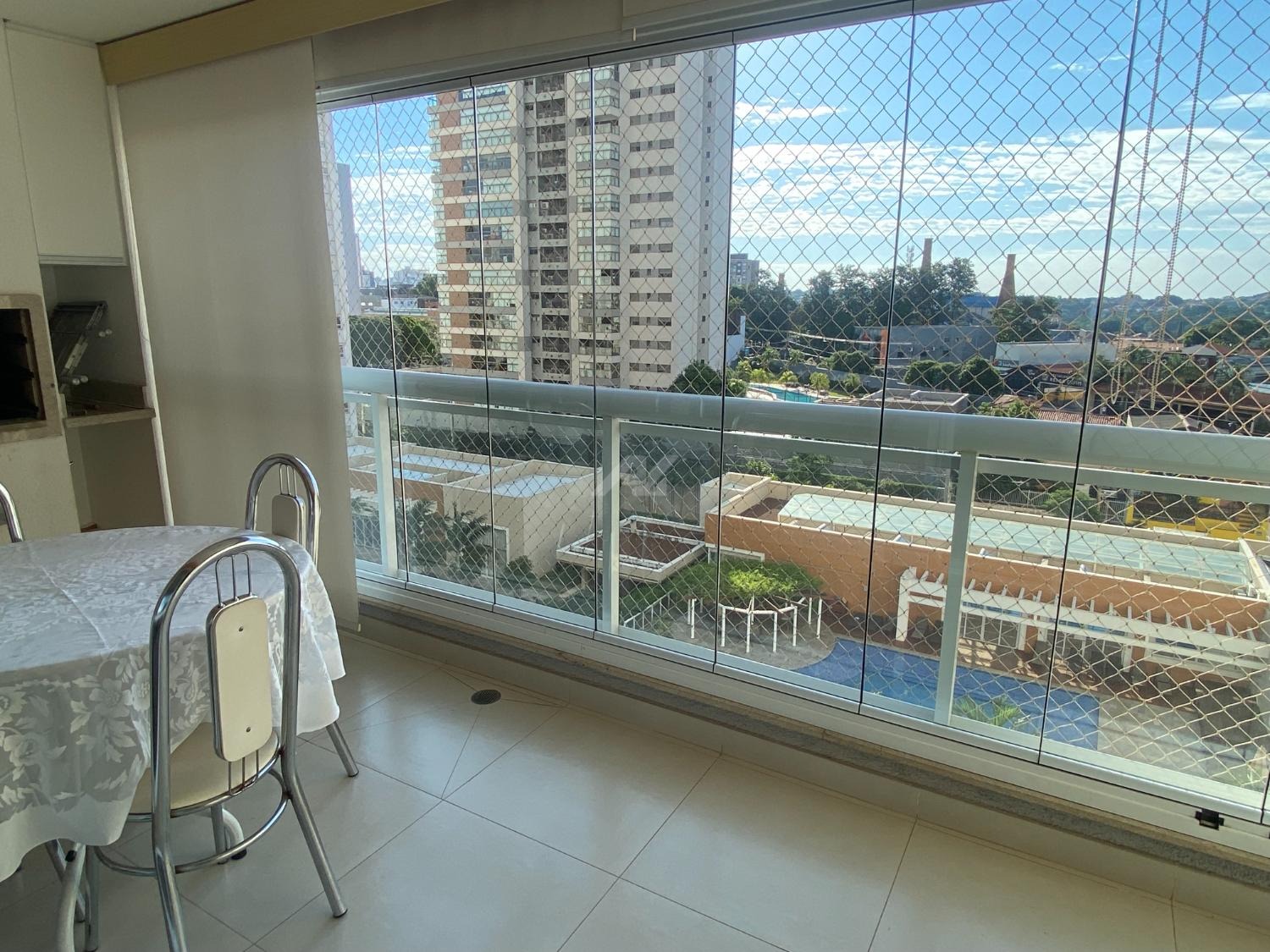 A varanda gourmet com vista para a piscina traz o ambiente ideal para receber amigos e aproveitar momentos de lazer com privacidade.