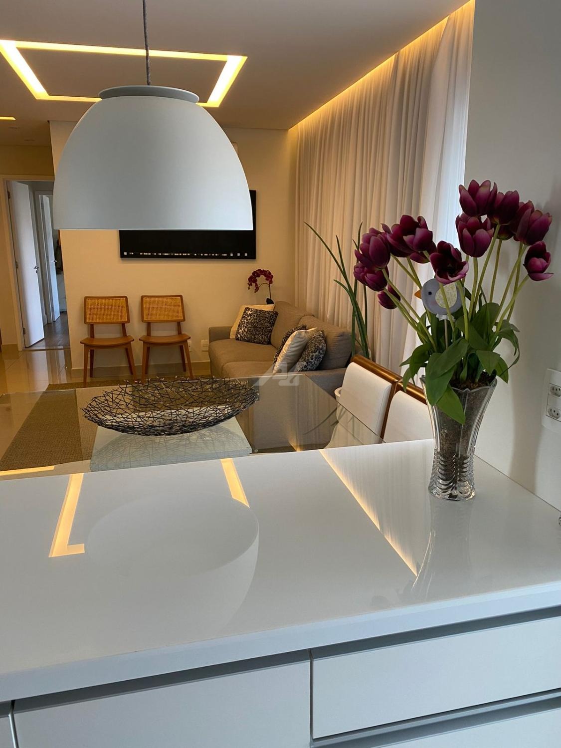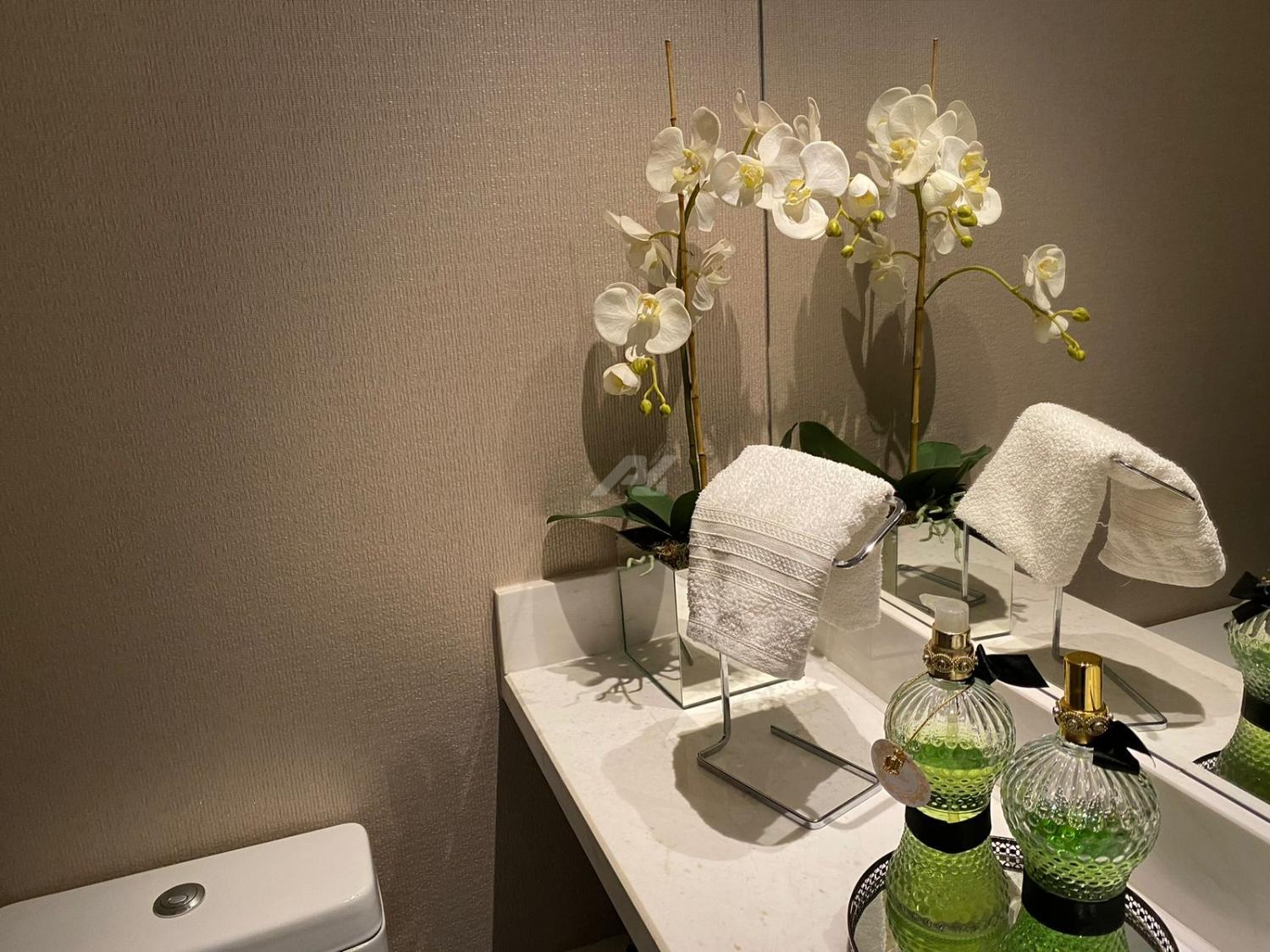 Apartamentos com 3 suítes, todas com armários planejados, living para 2 ambientes, lavabo, varanda gourmet com churrasqueira e fechamento em vidro, ar condicionado, cozinha americana planejada, com cooktp, forno e coifa, despensa, lavanderia, wc de serviço, varanda técnica (máquinas ar condicionado) e aquecedor à gás.