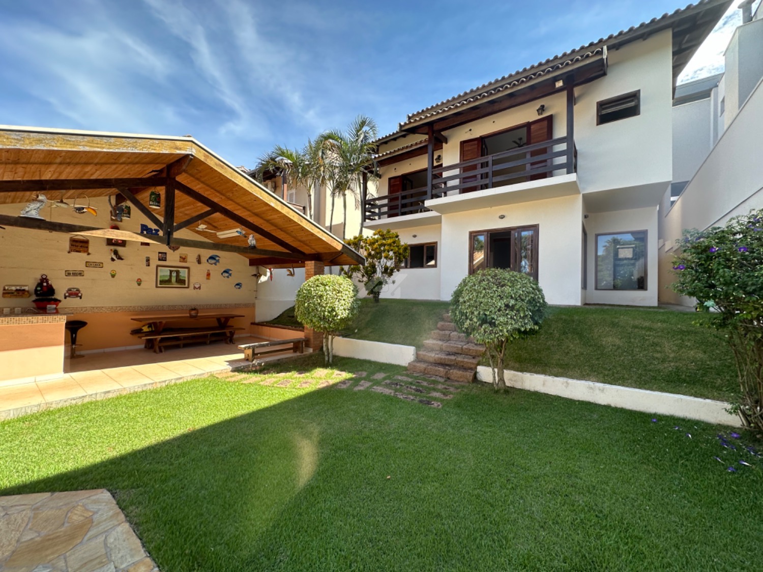 Sobrado à venda em San Conrado, Sousas. Situado em uma rua tranquila, o imóvel é impecável: revestido em porcelanato e carpete de madeira, com 3 dormitórios, sendo 2 suítes com closet, varanda e vista espetacular. A ampla sala de estar, com pé direito duplo, traz uma sensação de amplitude e sofisticação perfeita para grandes momentos ao lado de uma elegante sala de jantar. Além disso, há um escritório versátil, cozinha planejada, despensa, lavanderia, e um espaço gourmet com churrasqueira, piscina e paisagismo. Com 4 vagas de garagem, sendo 2 cobertas, esta casa é uma verdadeira joia. Agende sua visita e se encante!