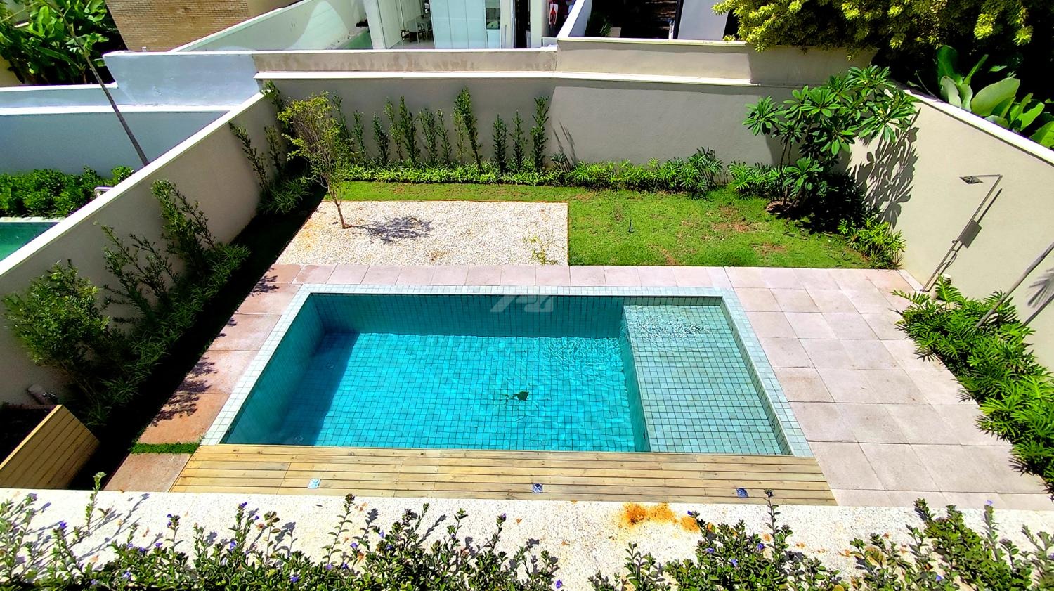 Piso Inferior: Aconchegante sala de televisão, lavabo para visitantes, espaçosa sala de estar, moderna área gourmet, prática lavanderia, refrescante piscina, e vestiário para maior comodidade.