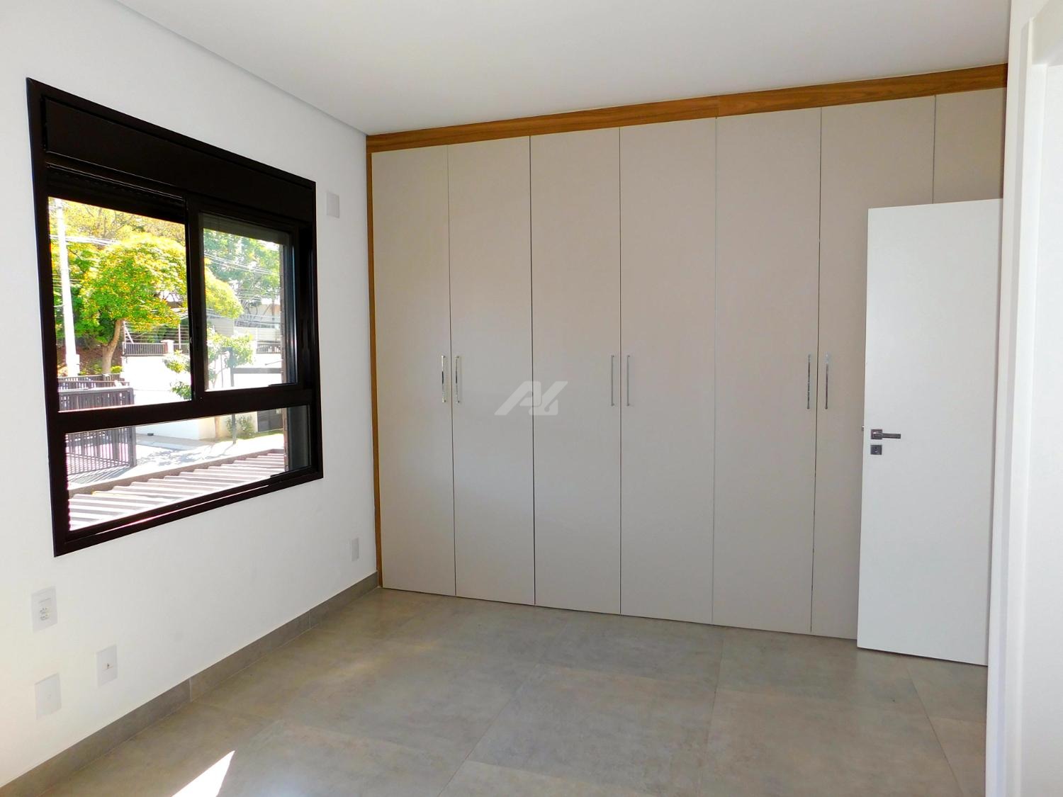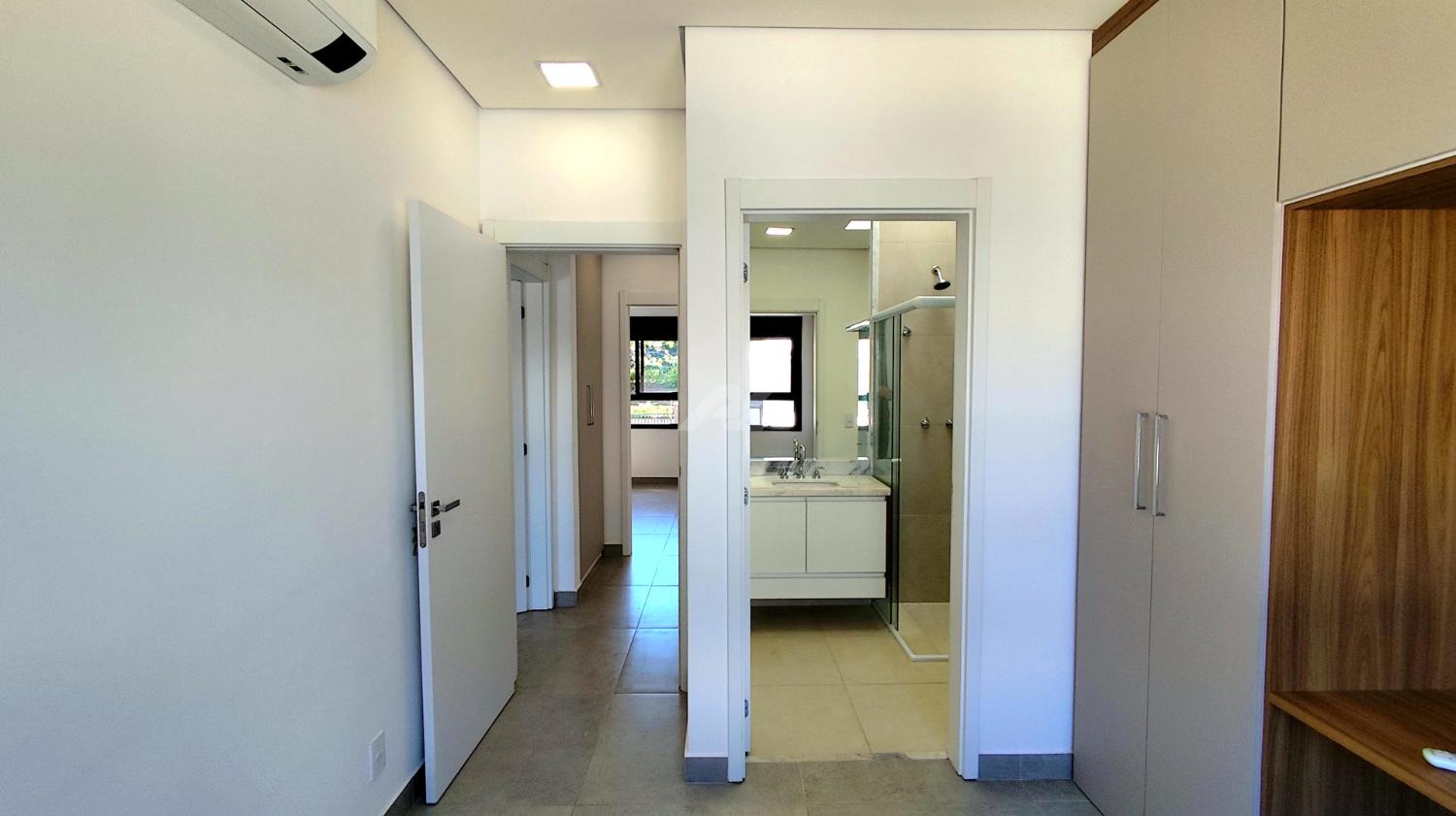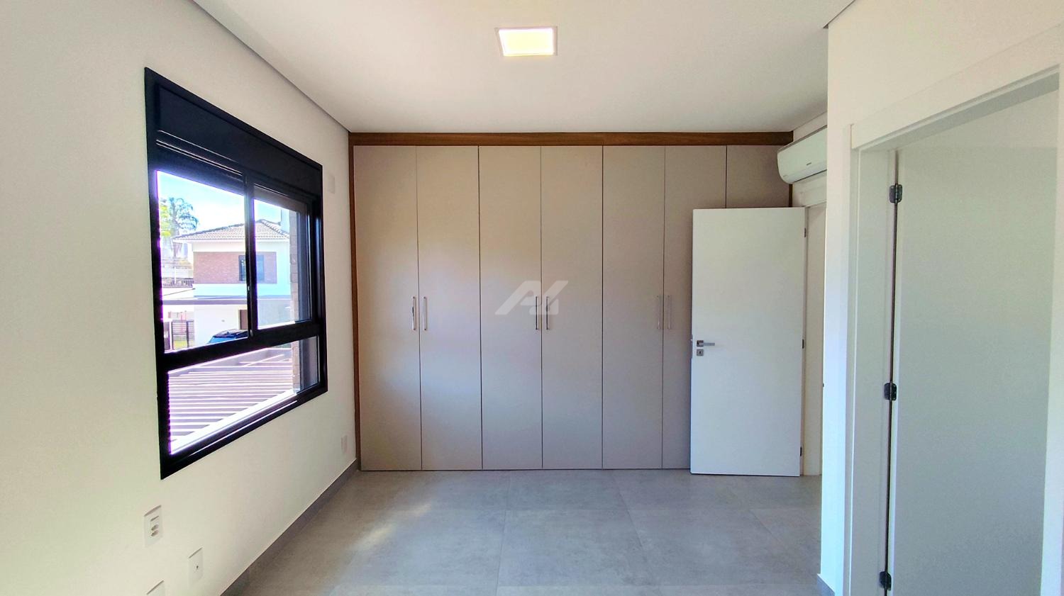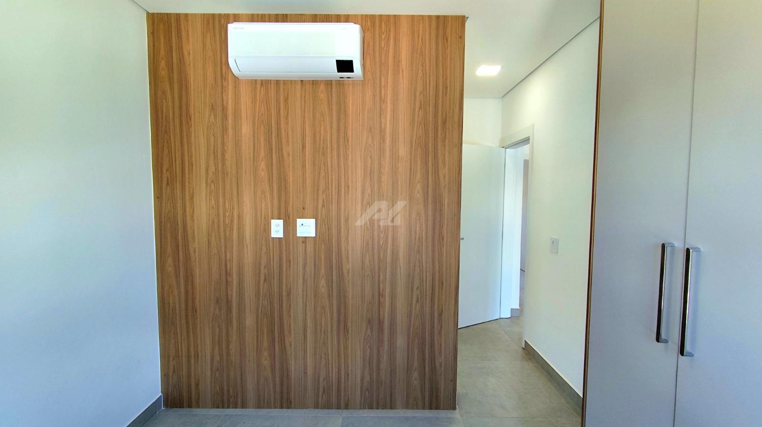 Armários e ar condicionado.