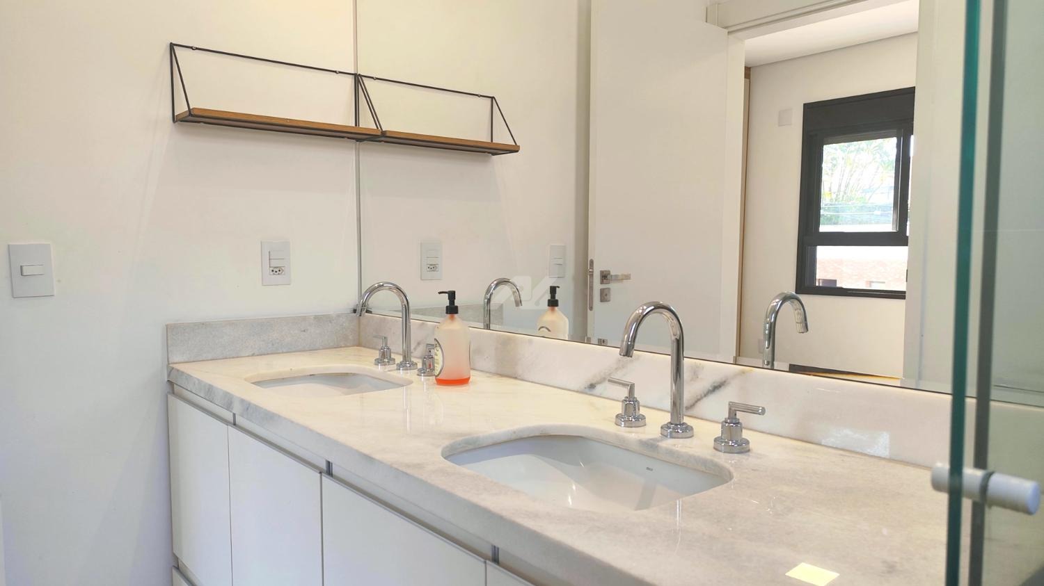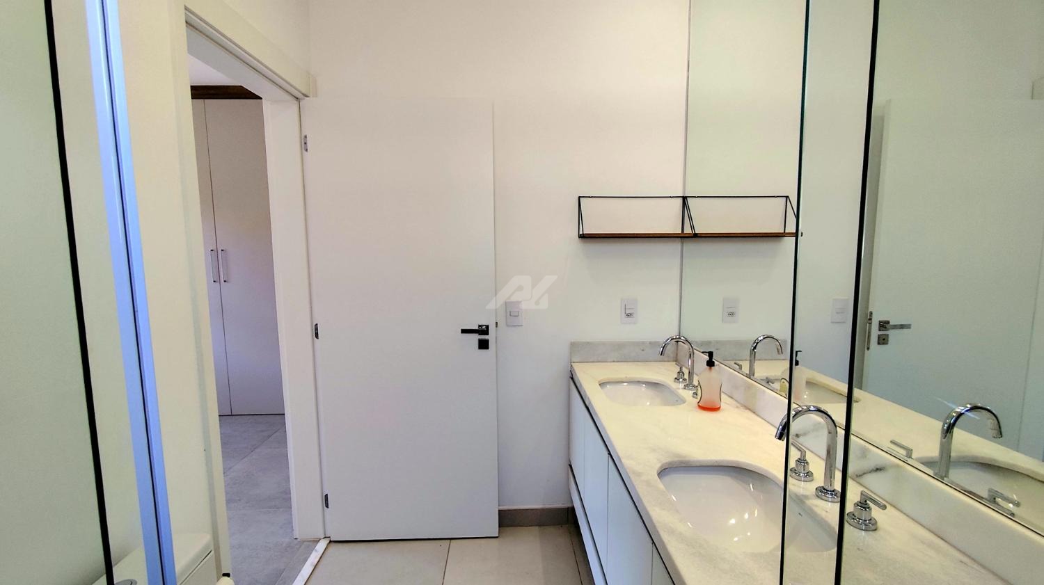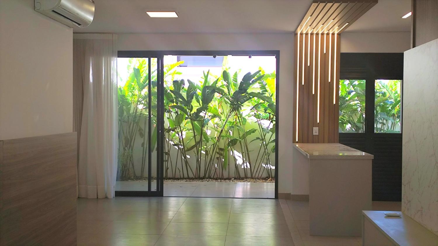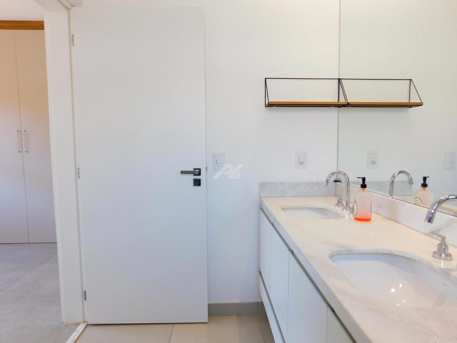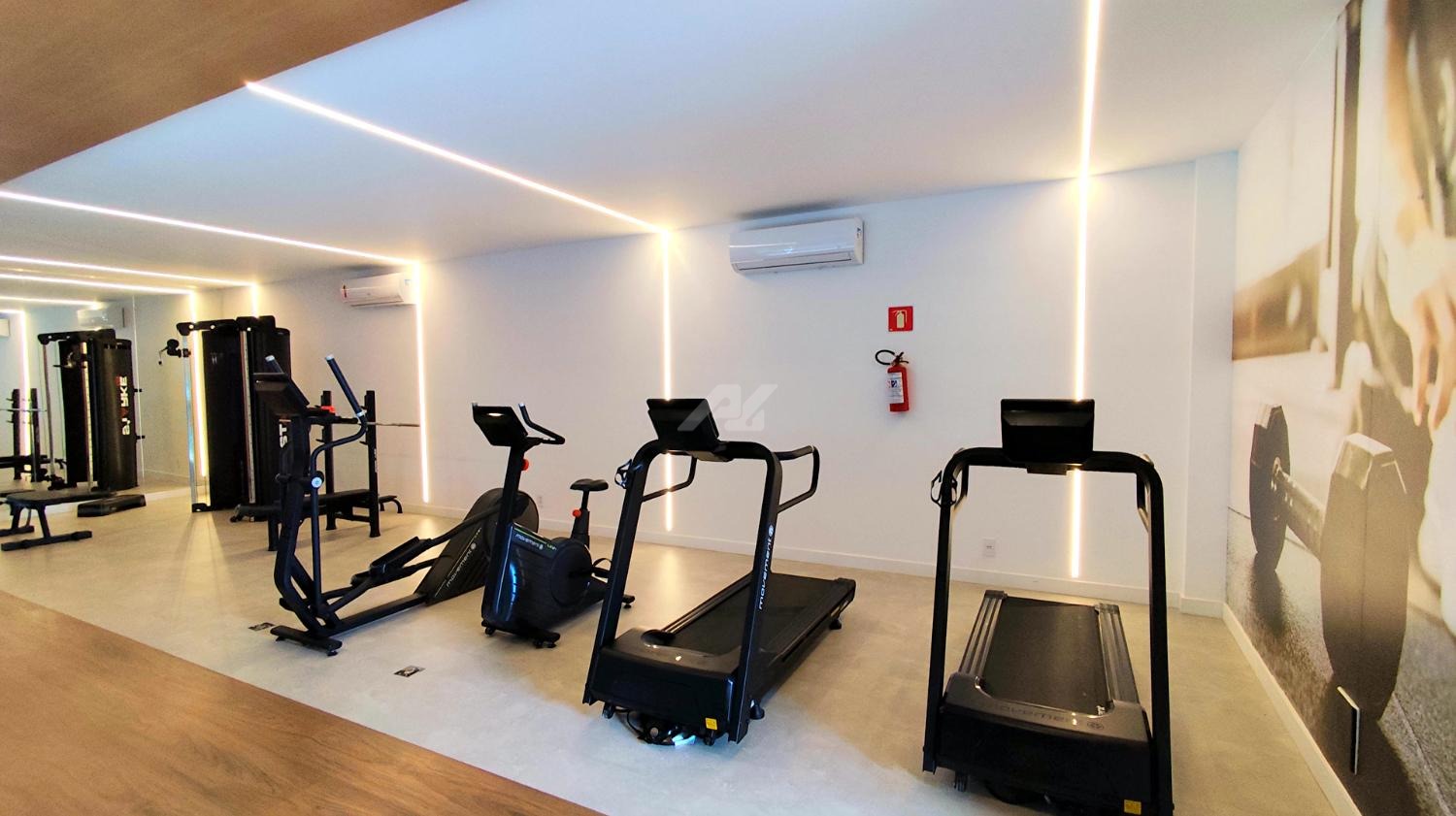 Armários e ar condicionado.