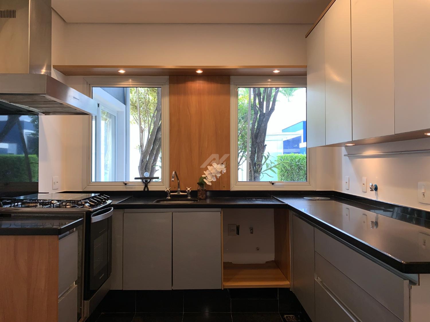 Cozinha totalmente planejada com fogão e coifa, espaço para maquina de lavar louça, despensa, dependências de serviço e lavanderia, Área externa com paisagismo, piscina / sauna.