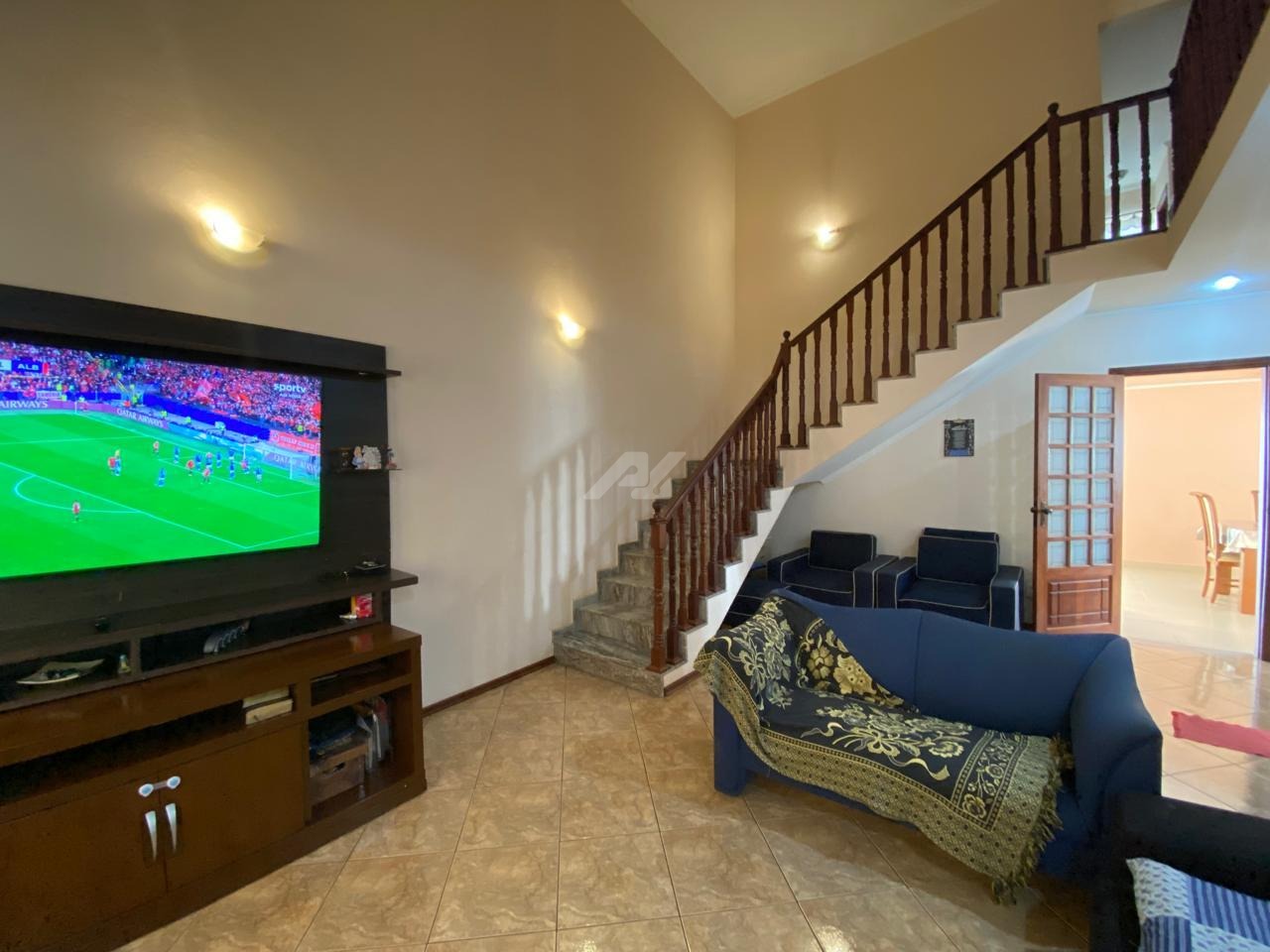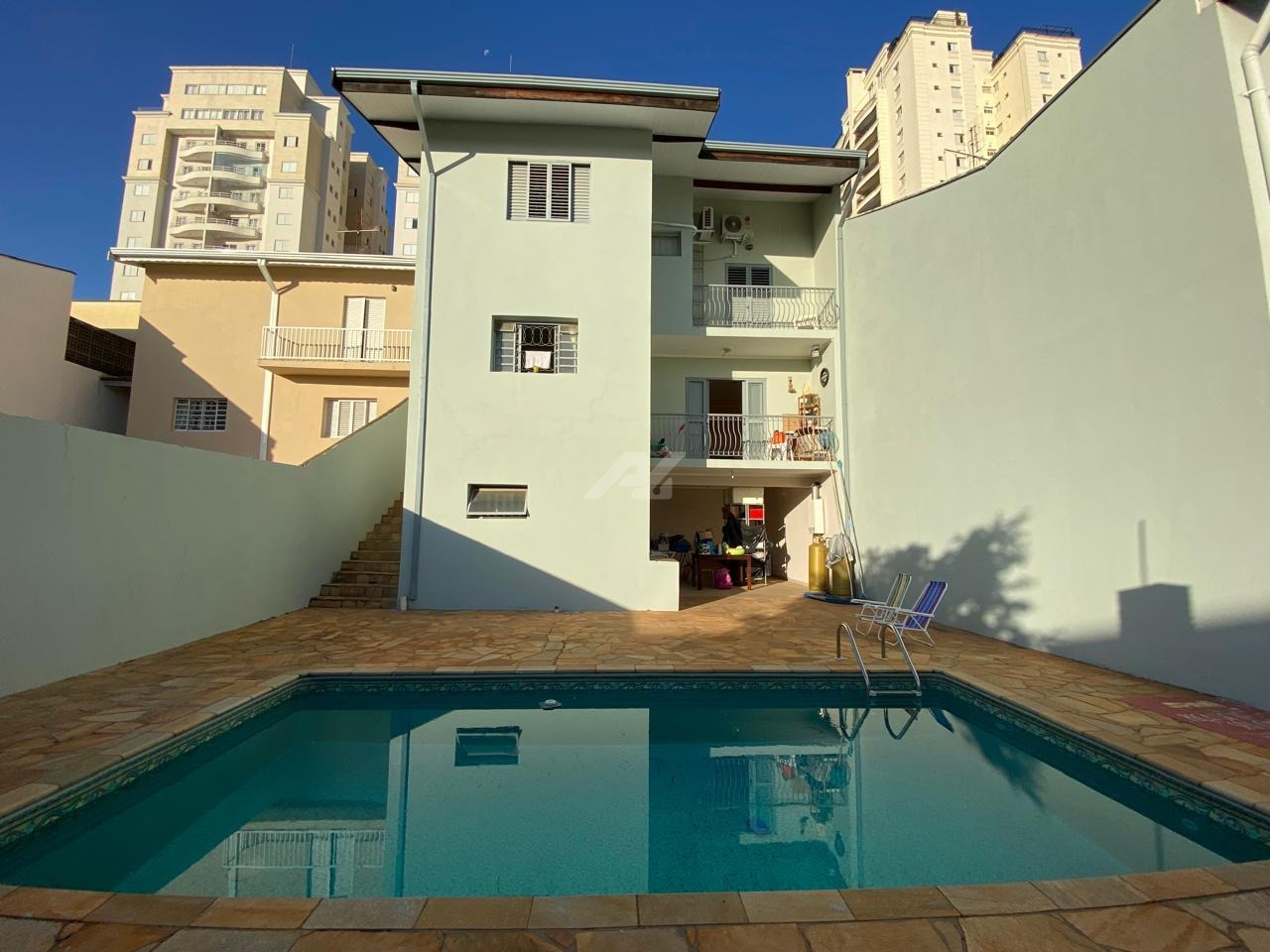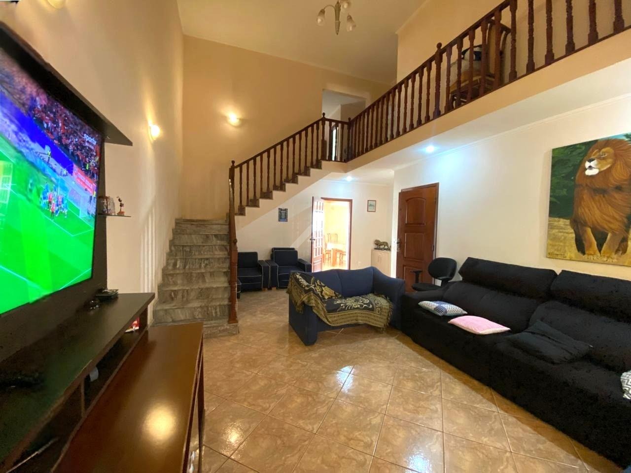 Com 300 m² de construção e esse sobrado conta com um social composto de salas, churrasqueira, piscina e amplo quintal.