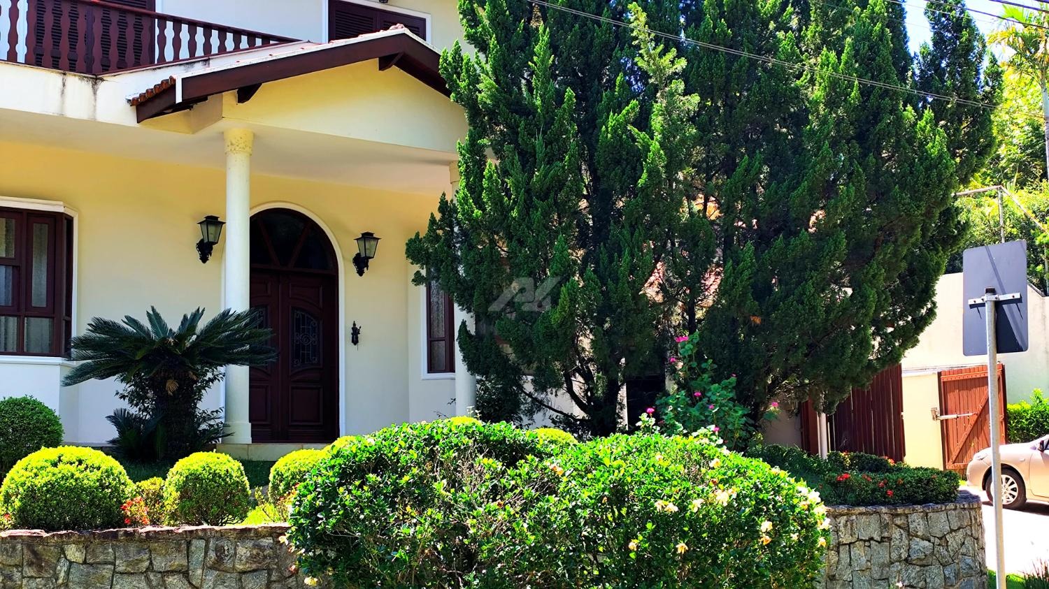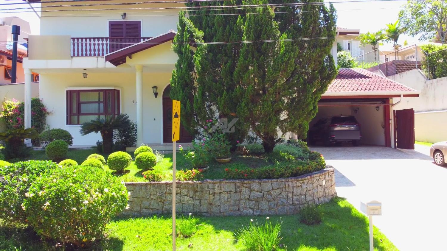 Estamos mostrando um sobrado com um terreno de 900 M2, com um belo paisagismo.