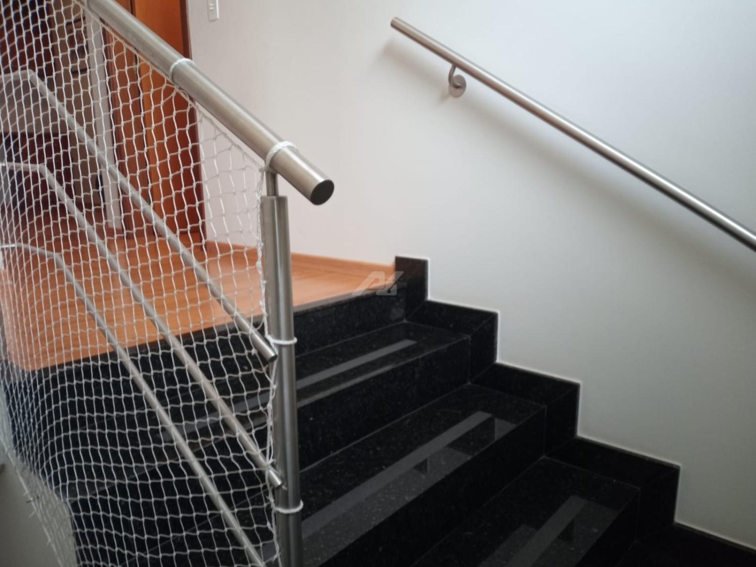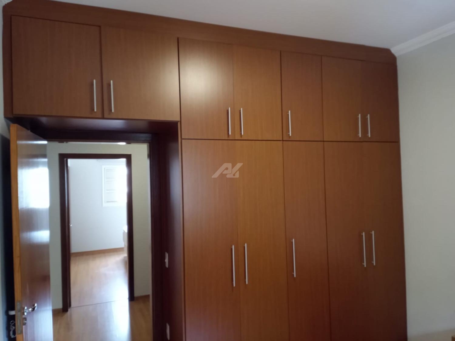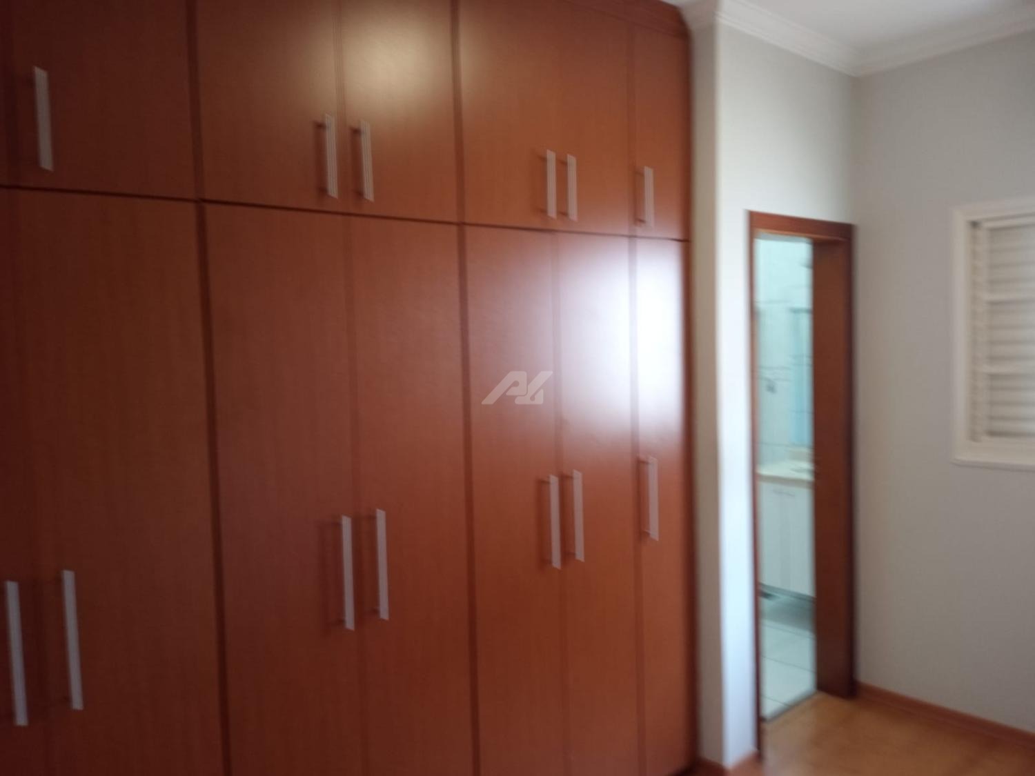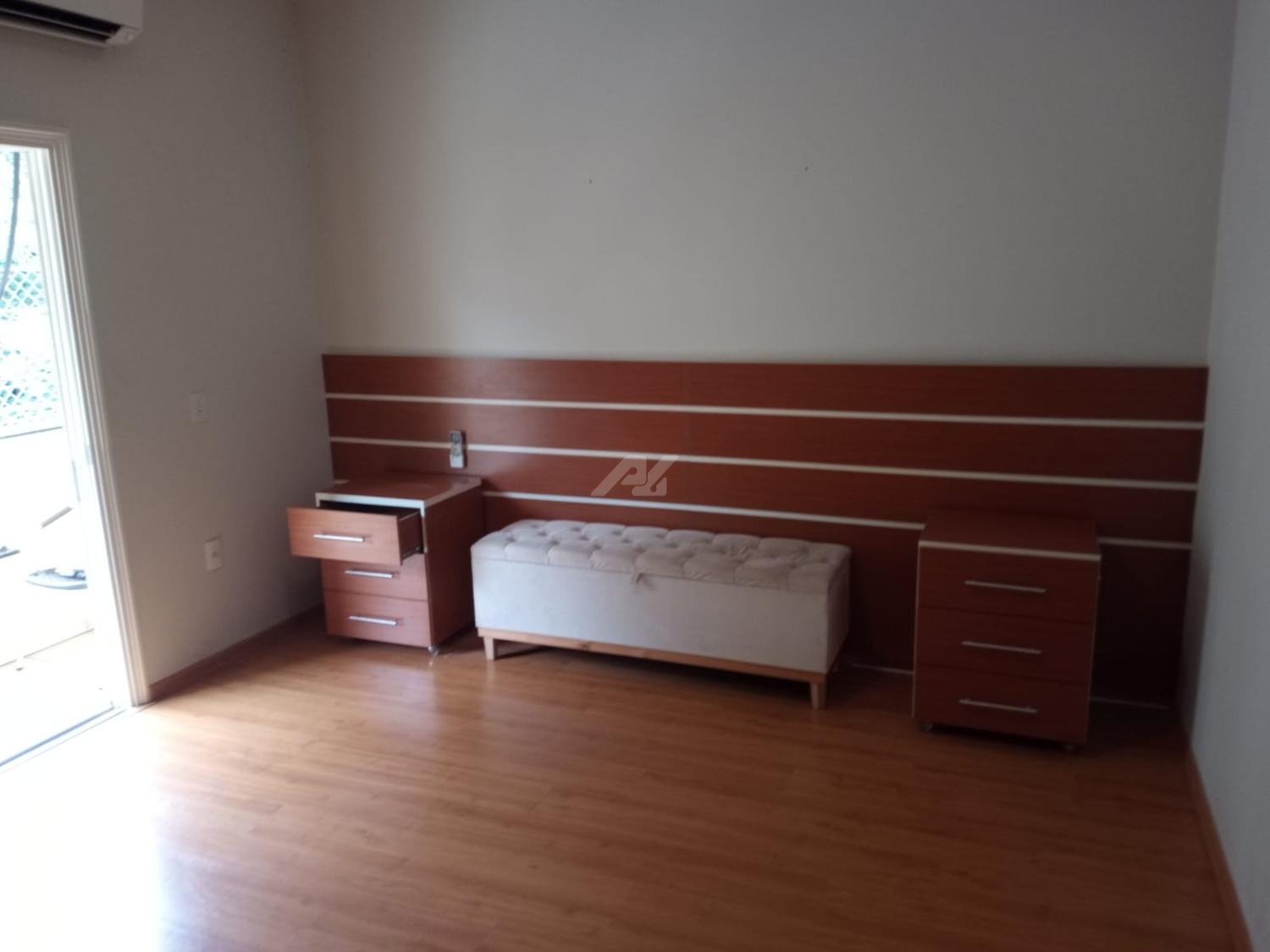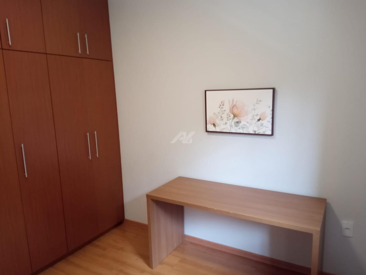 Piso superior com espaço de home office, roupeiro, 4 quartos completos de armários, sendo 2 suítes, e a master com hidro, varanda e ar condicionado.