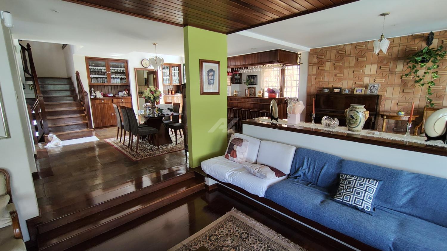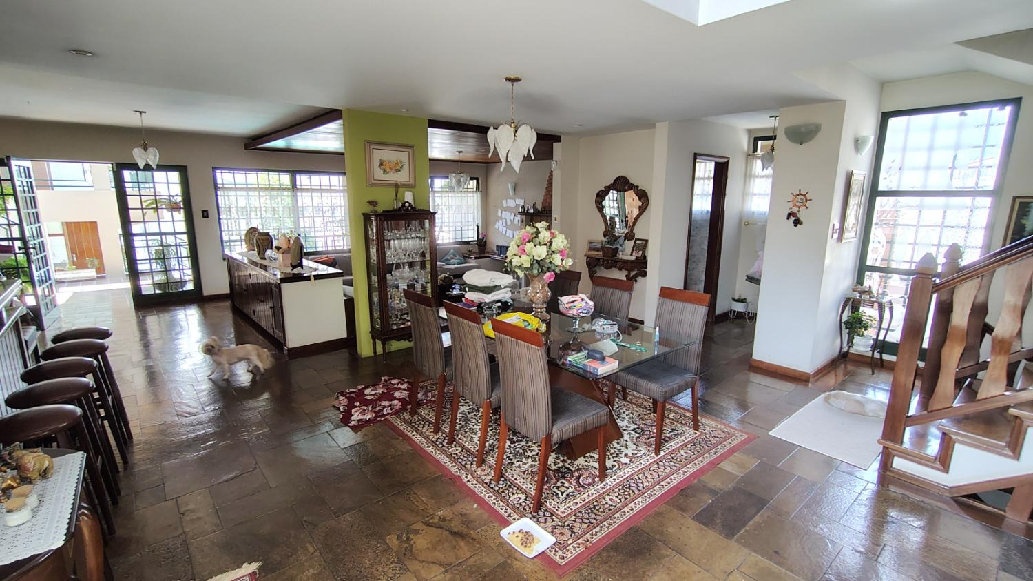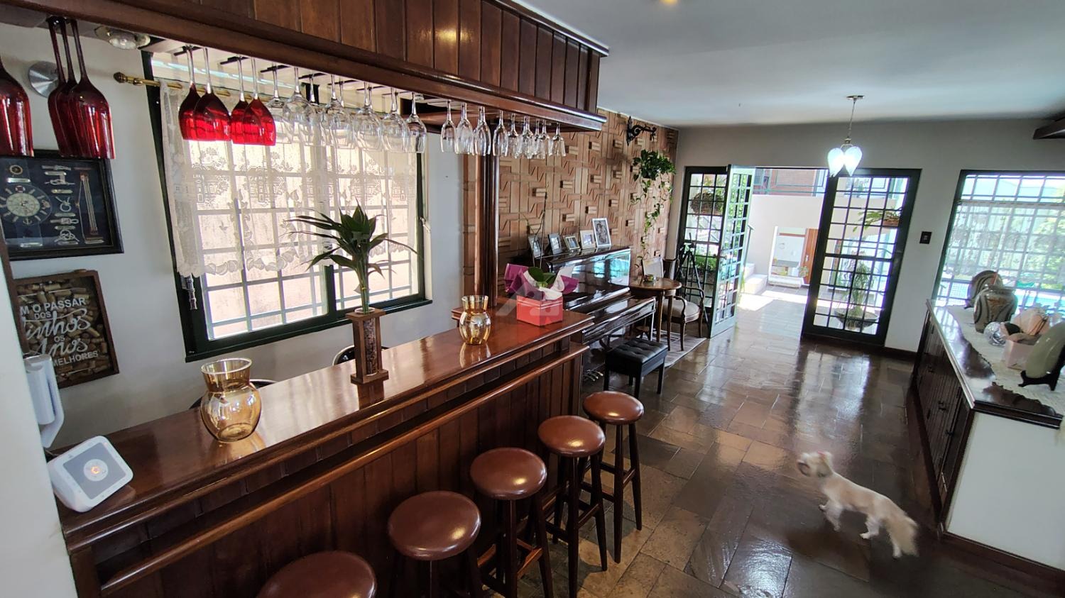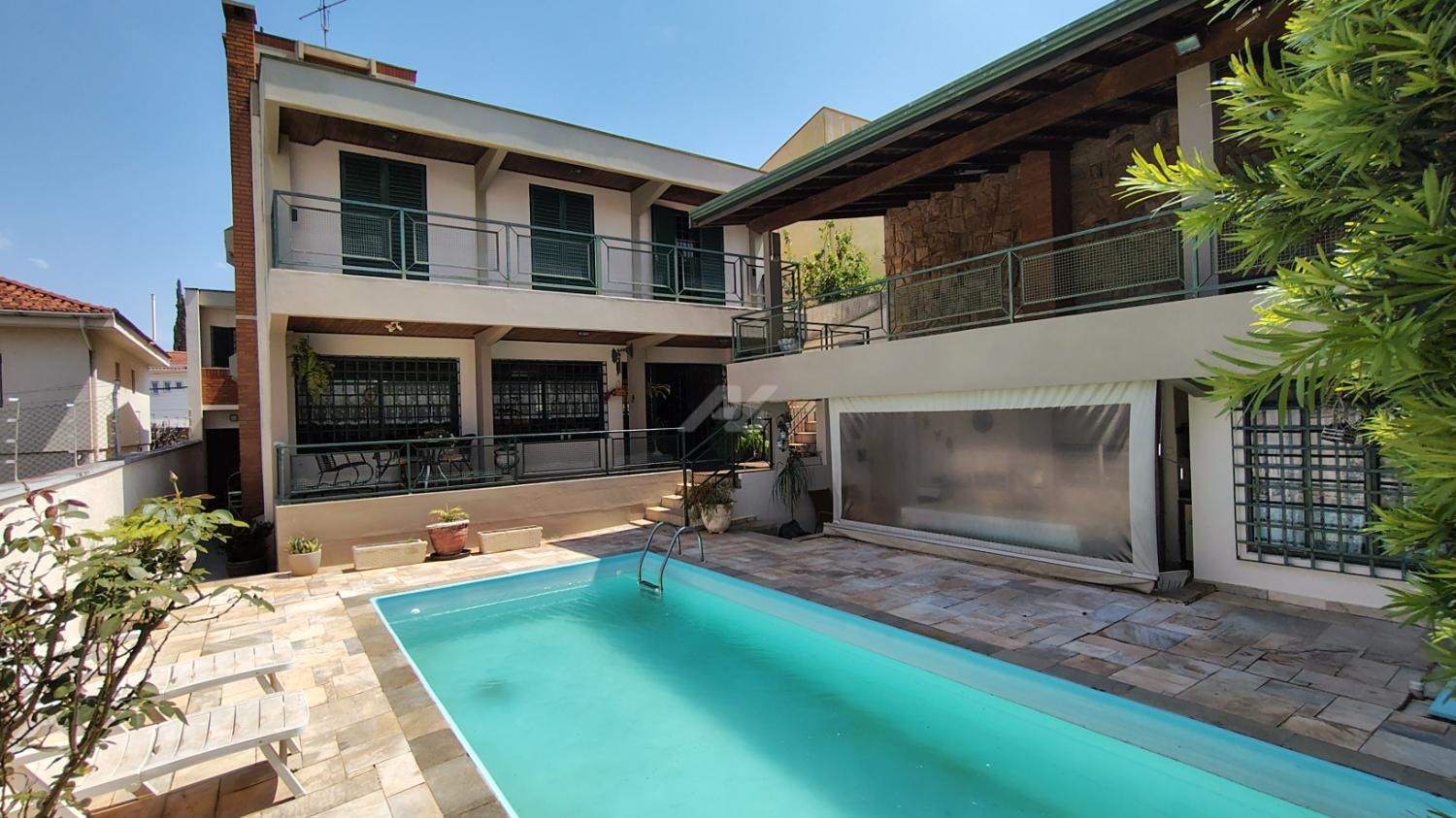 Ampla Distribuição: 5 Quartos (incluindo Suíte Master com vista da piscina, Quarto voltado para frente do imóvel com sacada e suíte , Quarto voltado para fundo da casa com vista da piscina, um quarto de serviço com suíte e um escritório no porão amplo que pode ser revertido como o 5 quarto.) – ideal para salas privativas/consultórios.