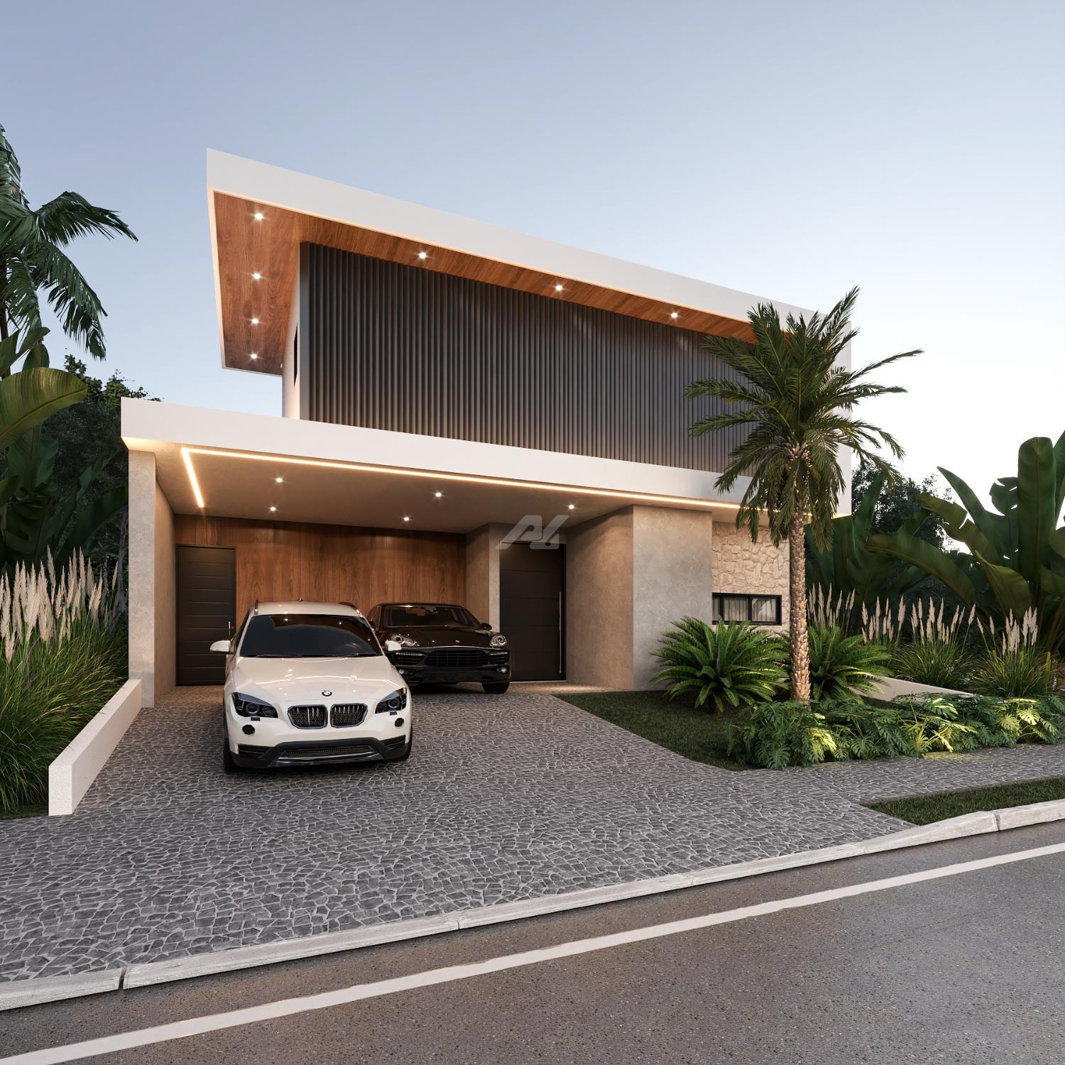 o Garagem para 2 carros e ponto para carro elétrico, demonstrando modernidade e visão para as necessidades futuras.