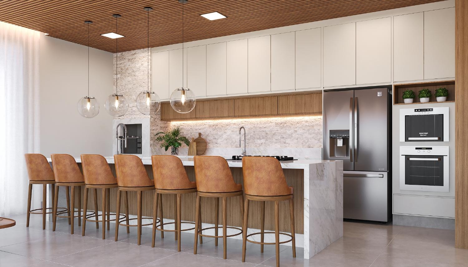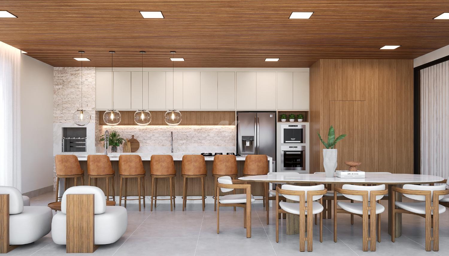 o Cozinha e Área Gourmet integradas, equipadas com lava-louças e sistema de água pressurizada, perfeitas para suas criações culinárias e momentos de confraternização.