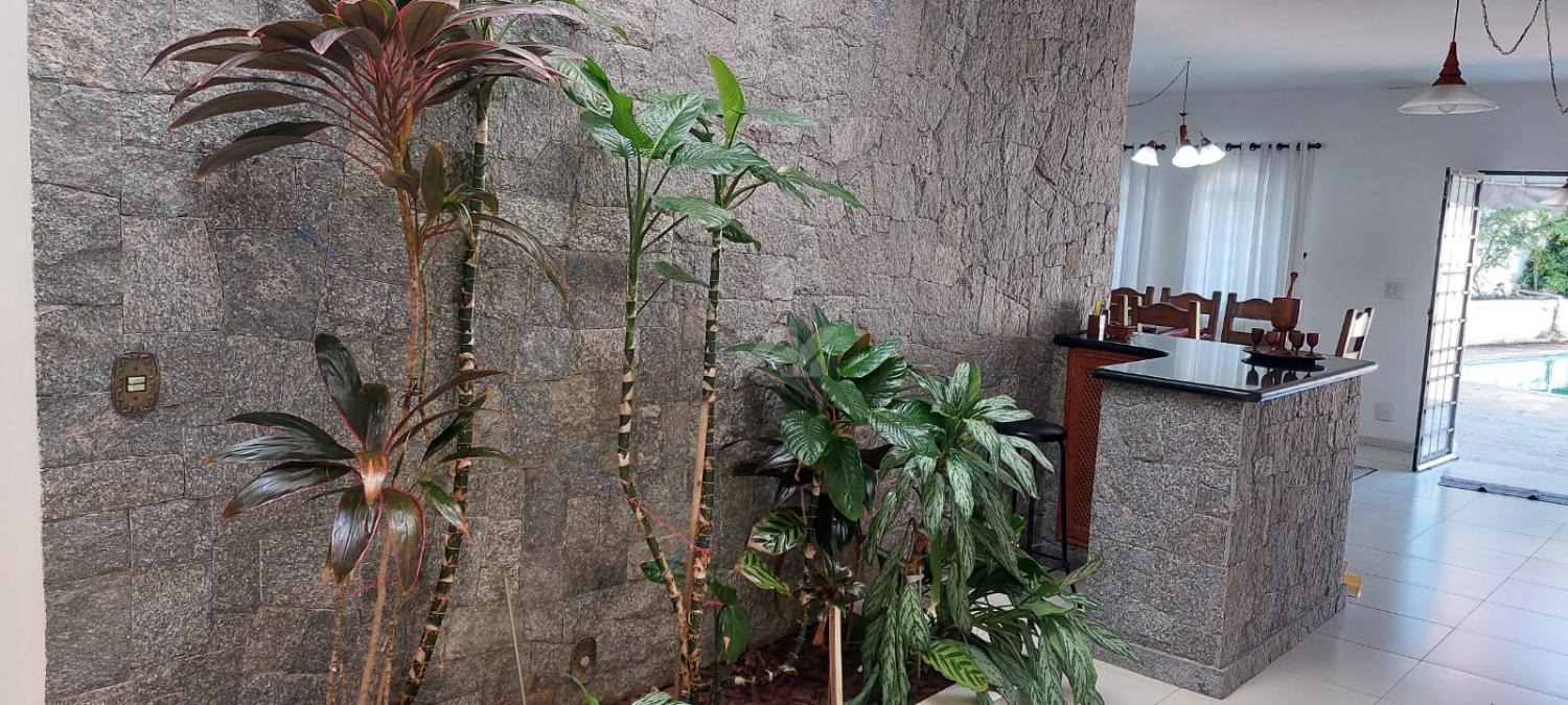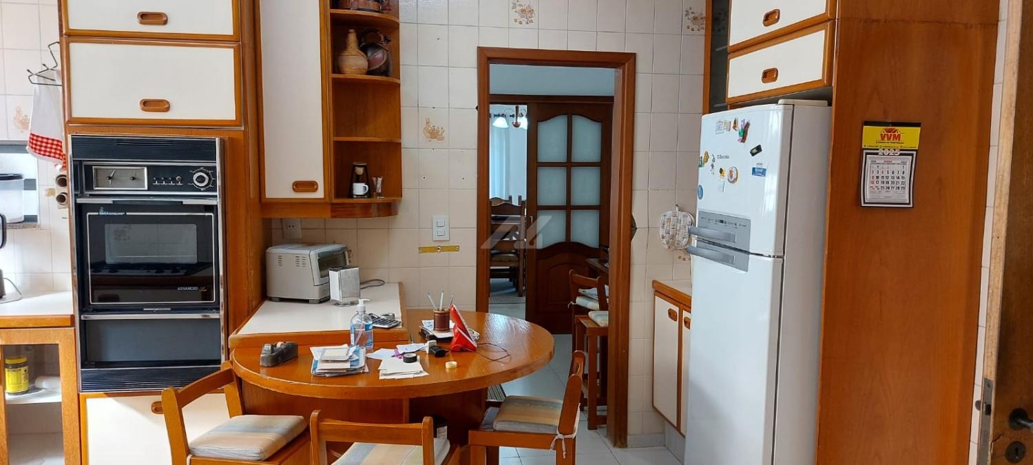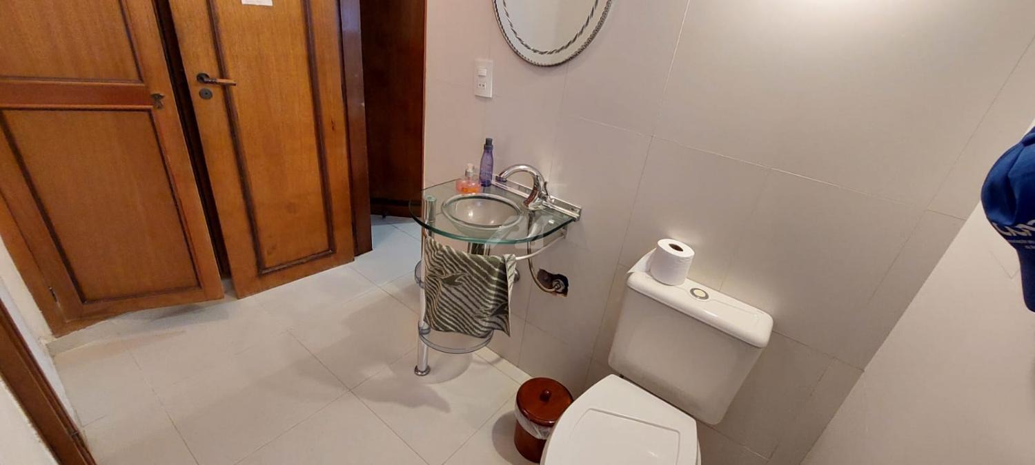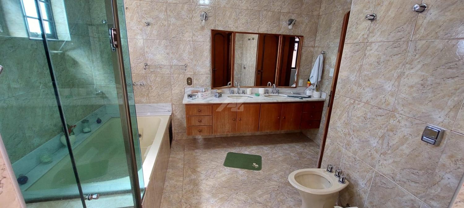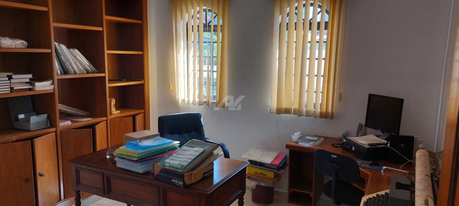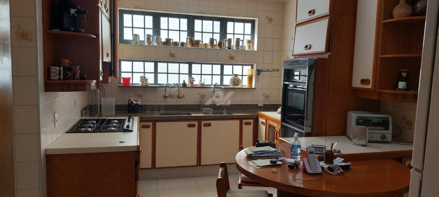 Piso térreo: Lavabo, living 3 ambientes com lareira, salas de almoço e jantar, suíte, escritório, cozinha, lavanderia, suíte de empregada, sala de costura.
