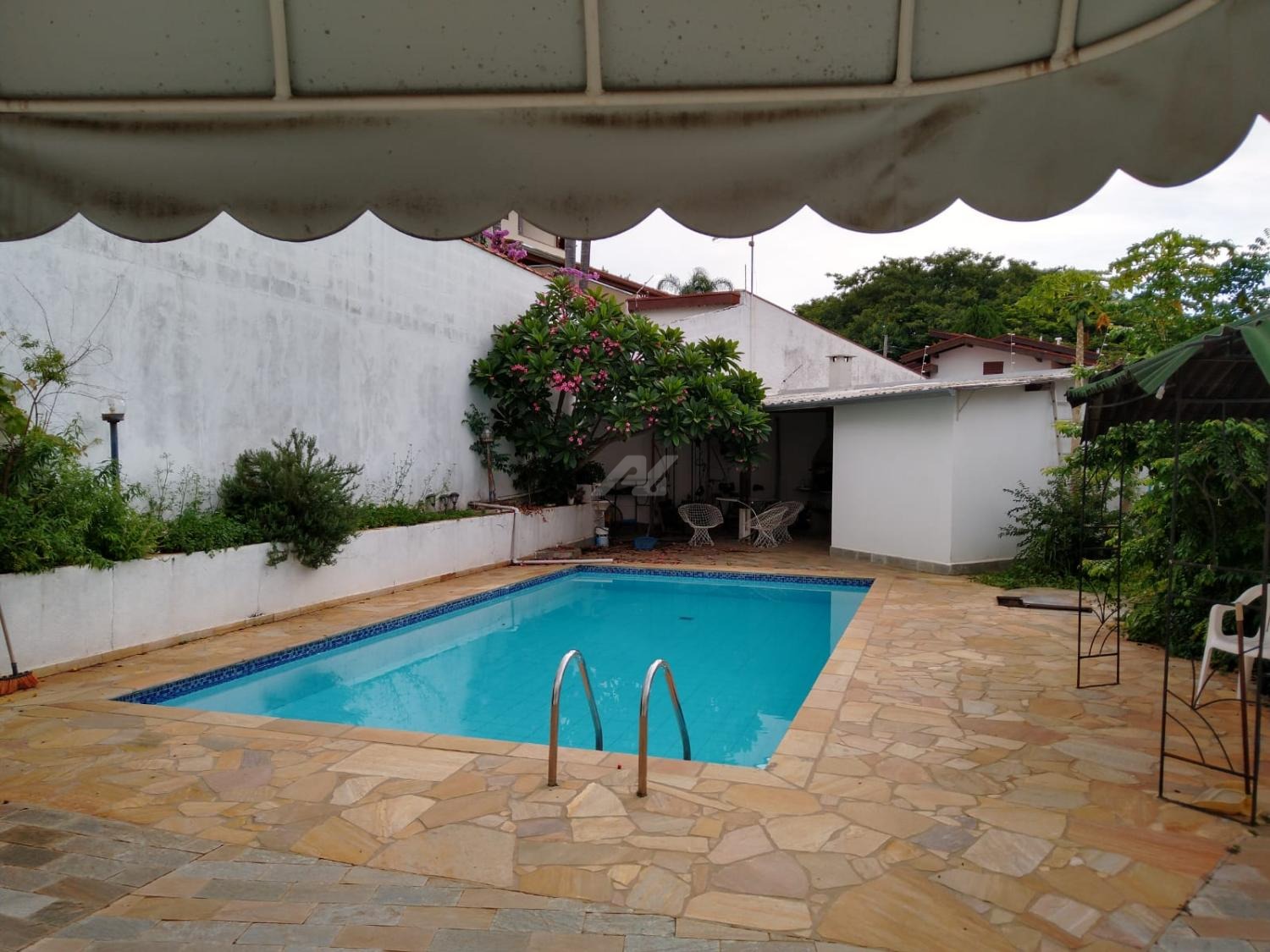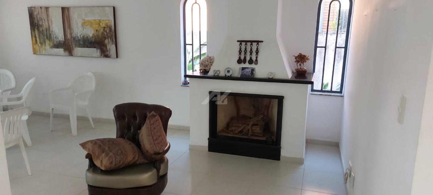 Quintal: piscina, edícula com churrasqueira, vestiário, paisagismo e garagem para 6 carros.