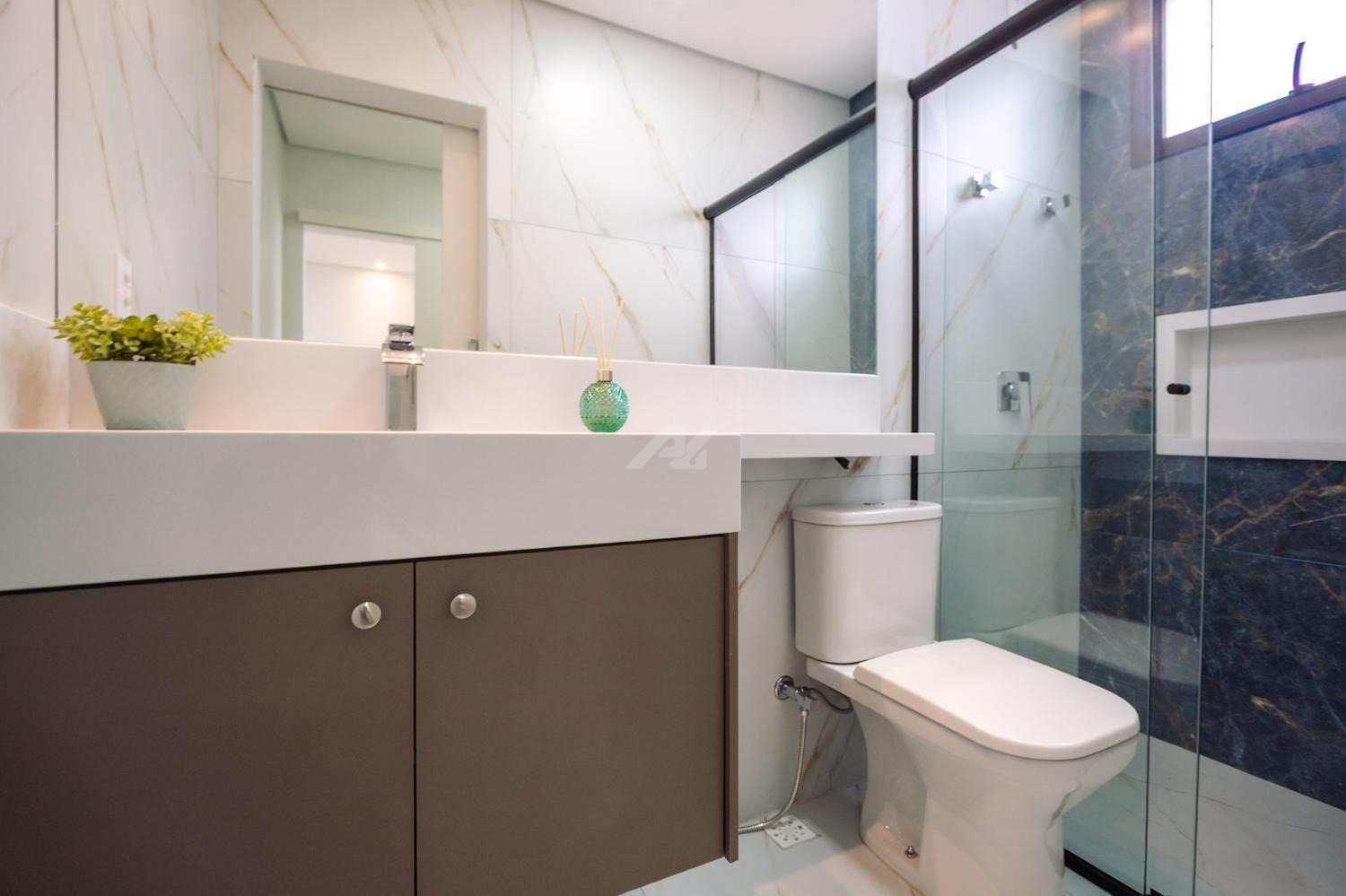 * Todas as pias dos banheiros são esculpidas em porcelanato