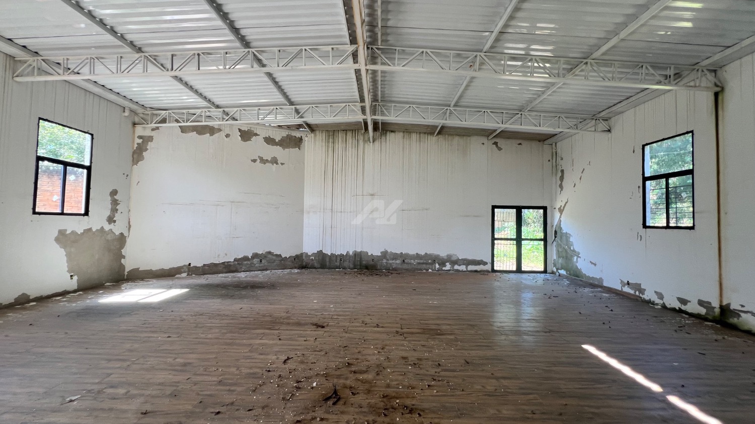 17 salas, 5 banheiros, 1 cozinha, galpão e 1 salão.