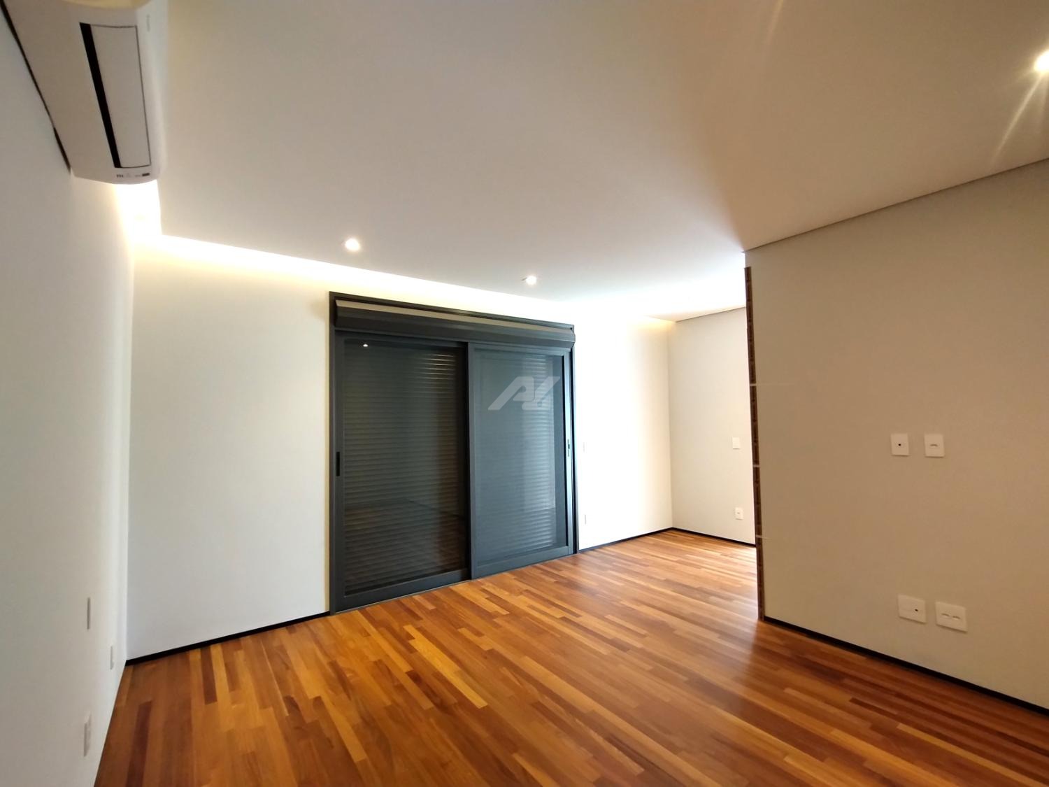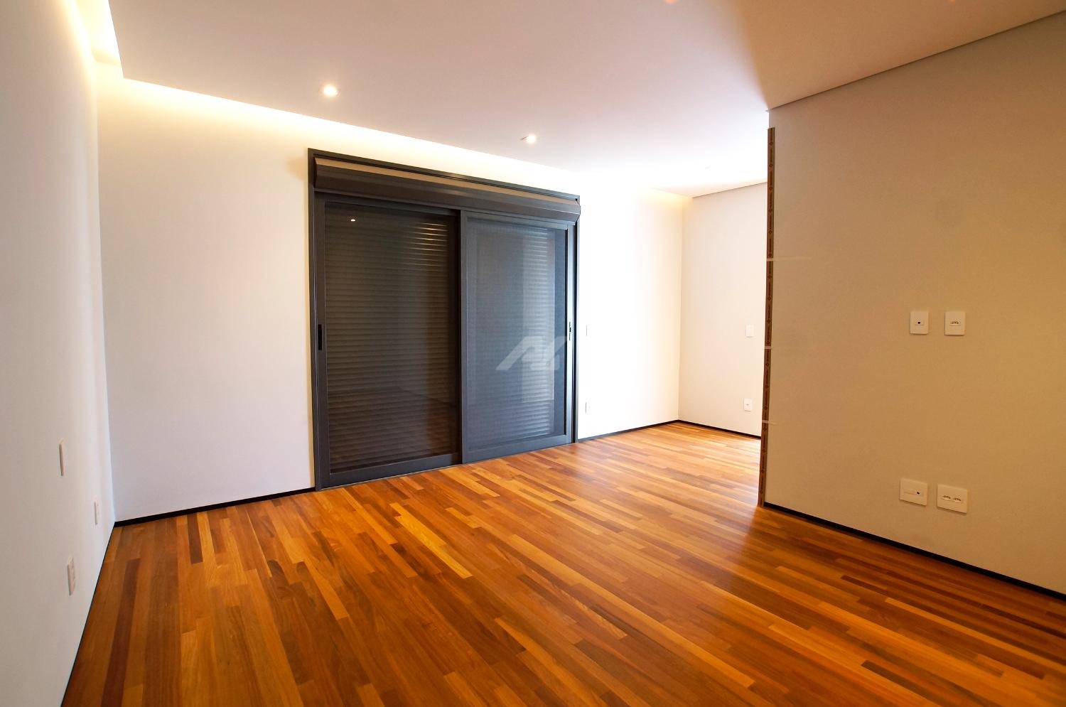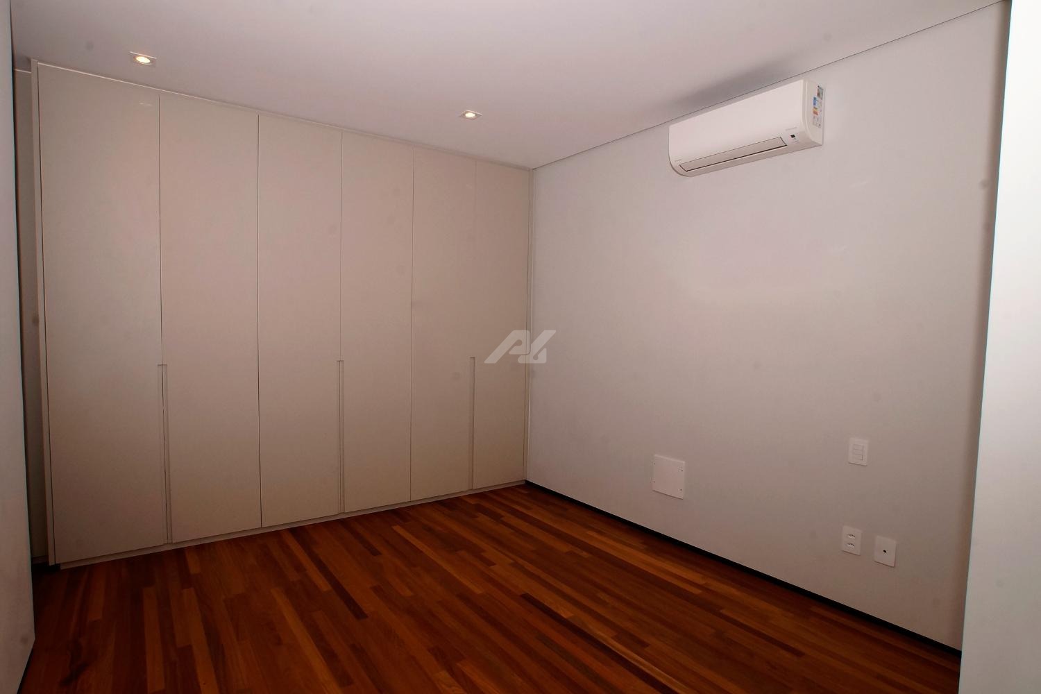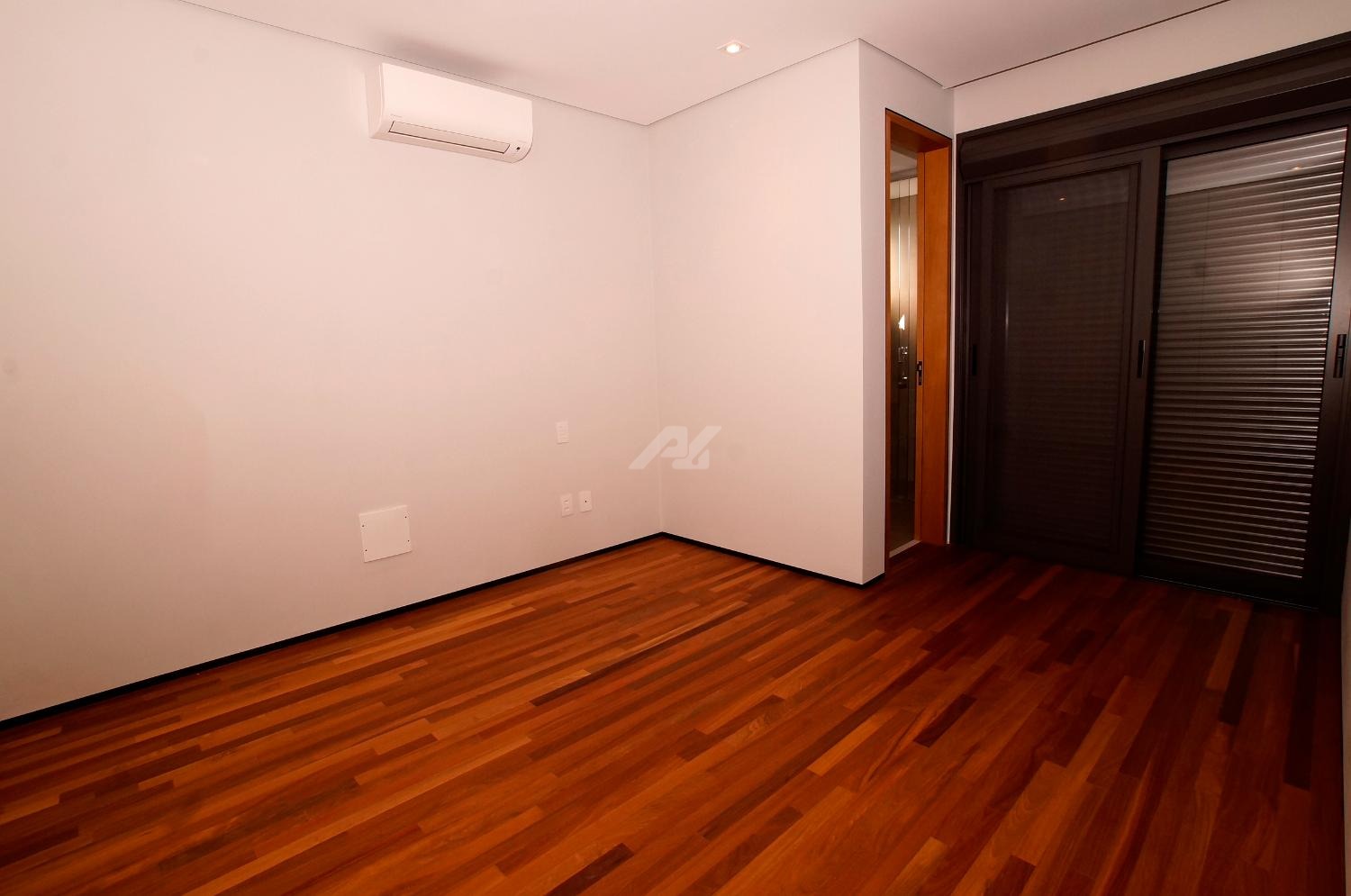 No piso superior, são três suítes completas, todas com armários planejados, persianas elétricas, ar-condicionado e sacada. A suíte master se destaca pelo amplo closet, banheiro com banheira, duas cubas e duas duchas. Há ainda um escritório, com possibilidade de reversão para a quarta suíte.