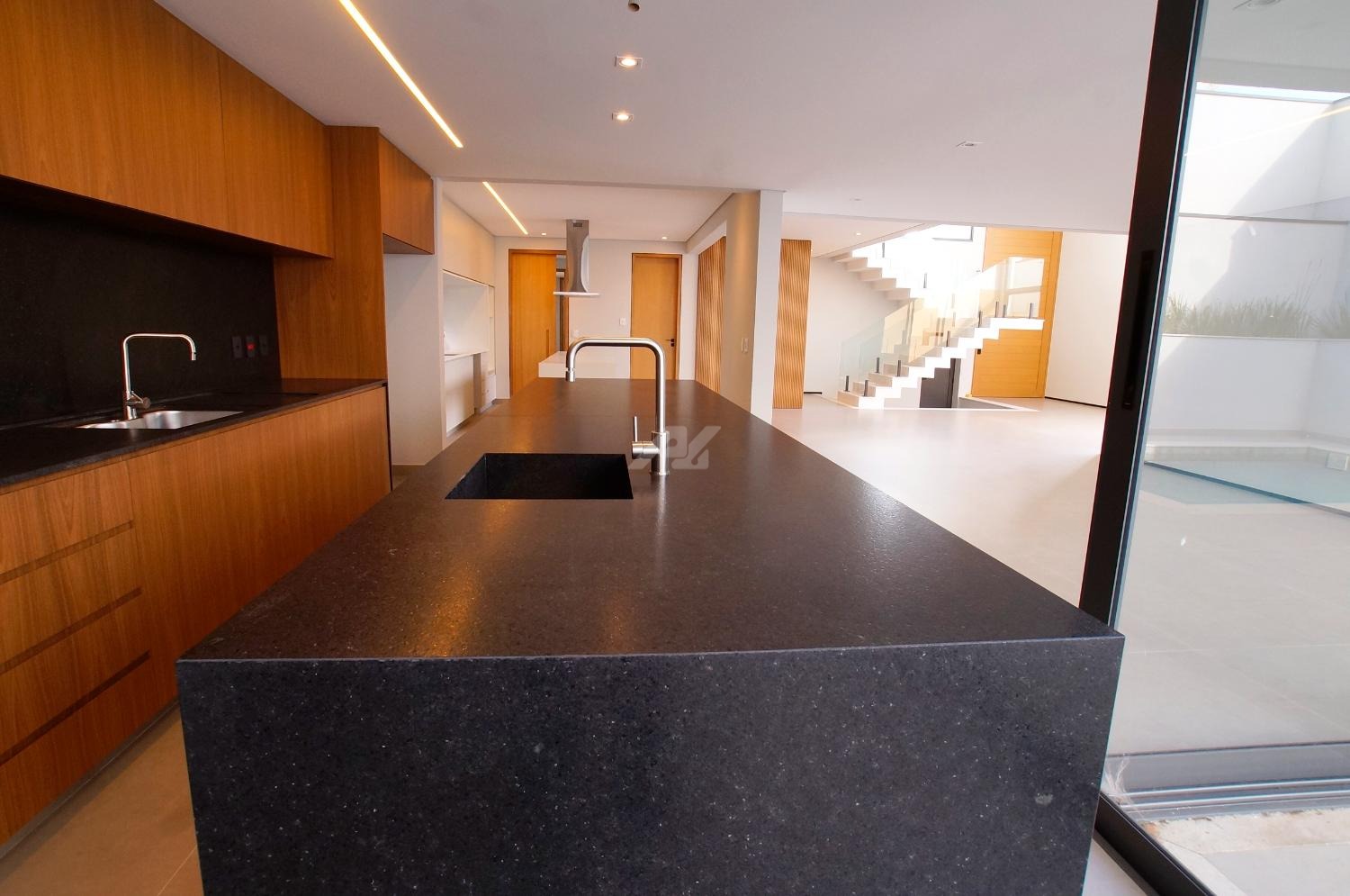 Residência de alto padrão, com planta bem resolvida e integração entre os ambientes sociais.