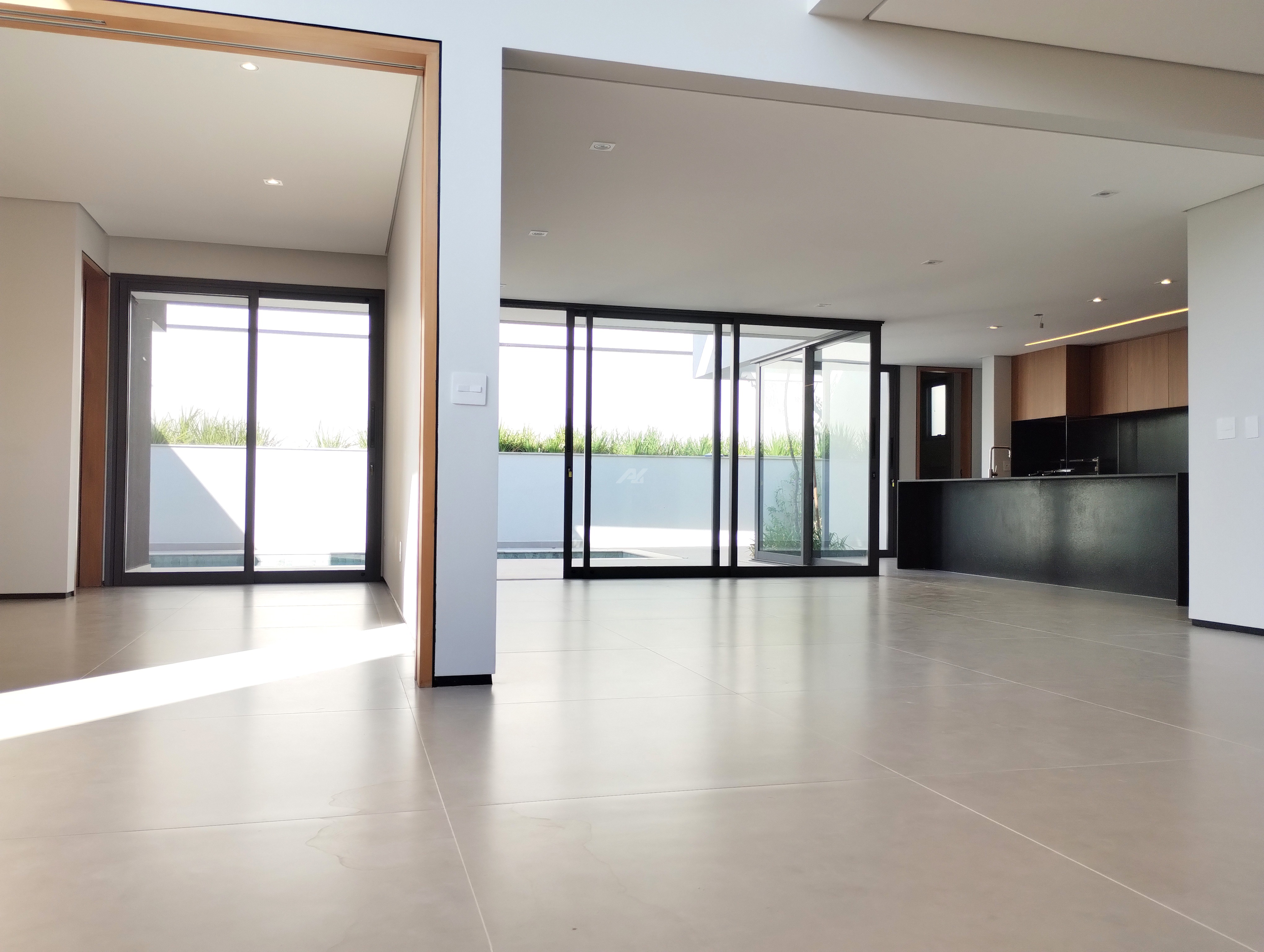 A entrada de luz natural é valorizada por amplas aberturas e grandes panos de vidro, trazendo luminosidade para os espaços ao longo do dia.