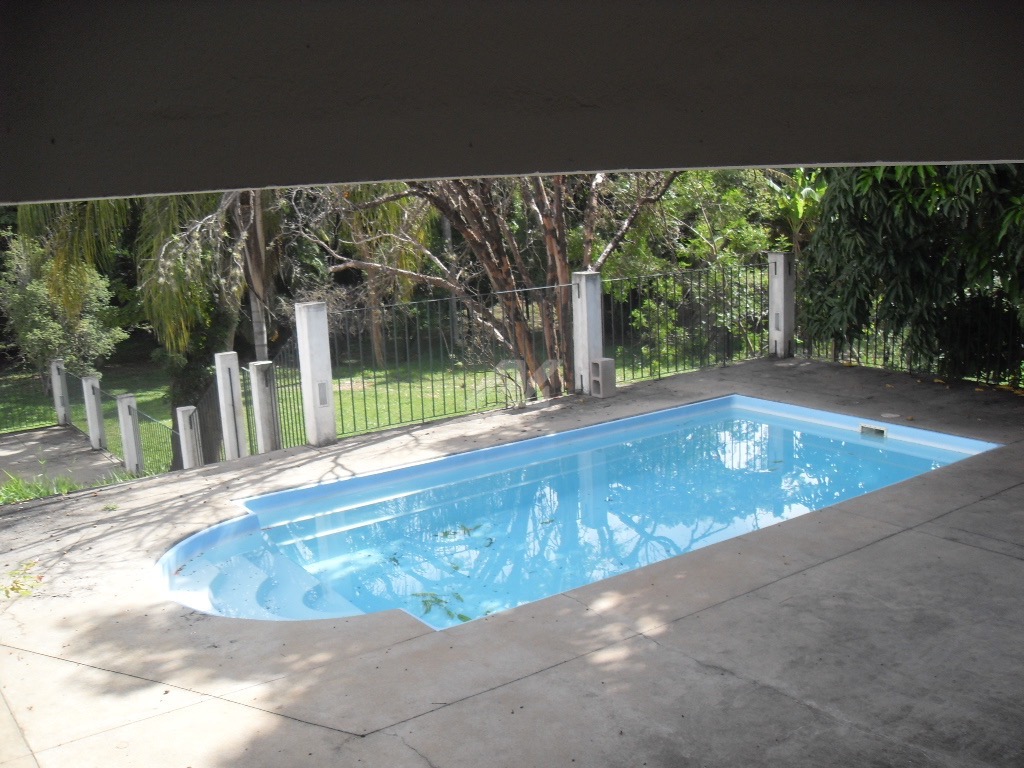 Completa a área externa uma piscina de médio porte.