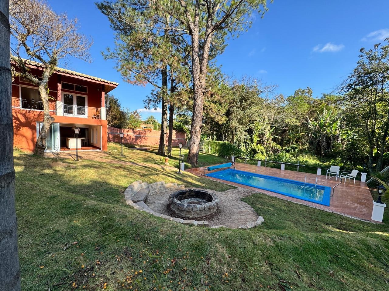 A área de lazer é completa, com pomar, lago, piscina, churrasqueira, varanda gourmet, solarium, playground e amplo quintal, ideal para receber amigos e familiares.