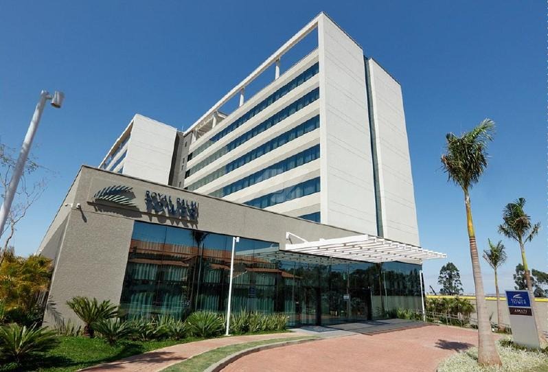 Suíte a venda no hotel Royal Palm Tower Anhanguera. O hotel, de categoria 4 estrelas, faz parte do mais completo destino de eventos do Brasil. O hotel fica situado na principal entrada de Campinas no encontro entre as rodovias Anhanguera e Santos Dumont, e fica a 15 minutos do aeroporto de Viracopos.