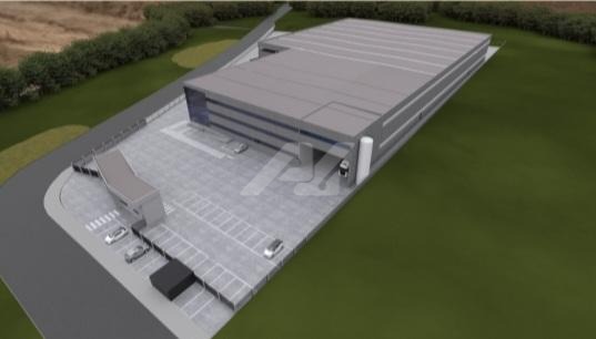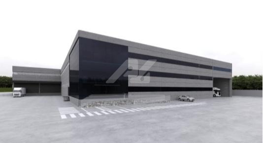 A construção é em sistema pré-moldado, com pé-direito de 12 metros e piso de concreto polido com capacidade para 6 toneladas por m². A área administrativa é 100% climatizada e conta com elevador para até 8 pessoas. A fachada em pele de vidro confere modernidade e excelente iluminação natural, complementada por sistema de LED.