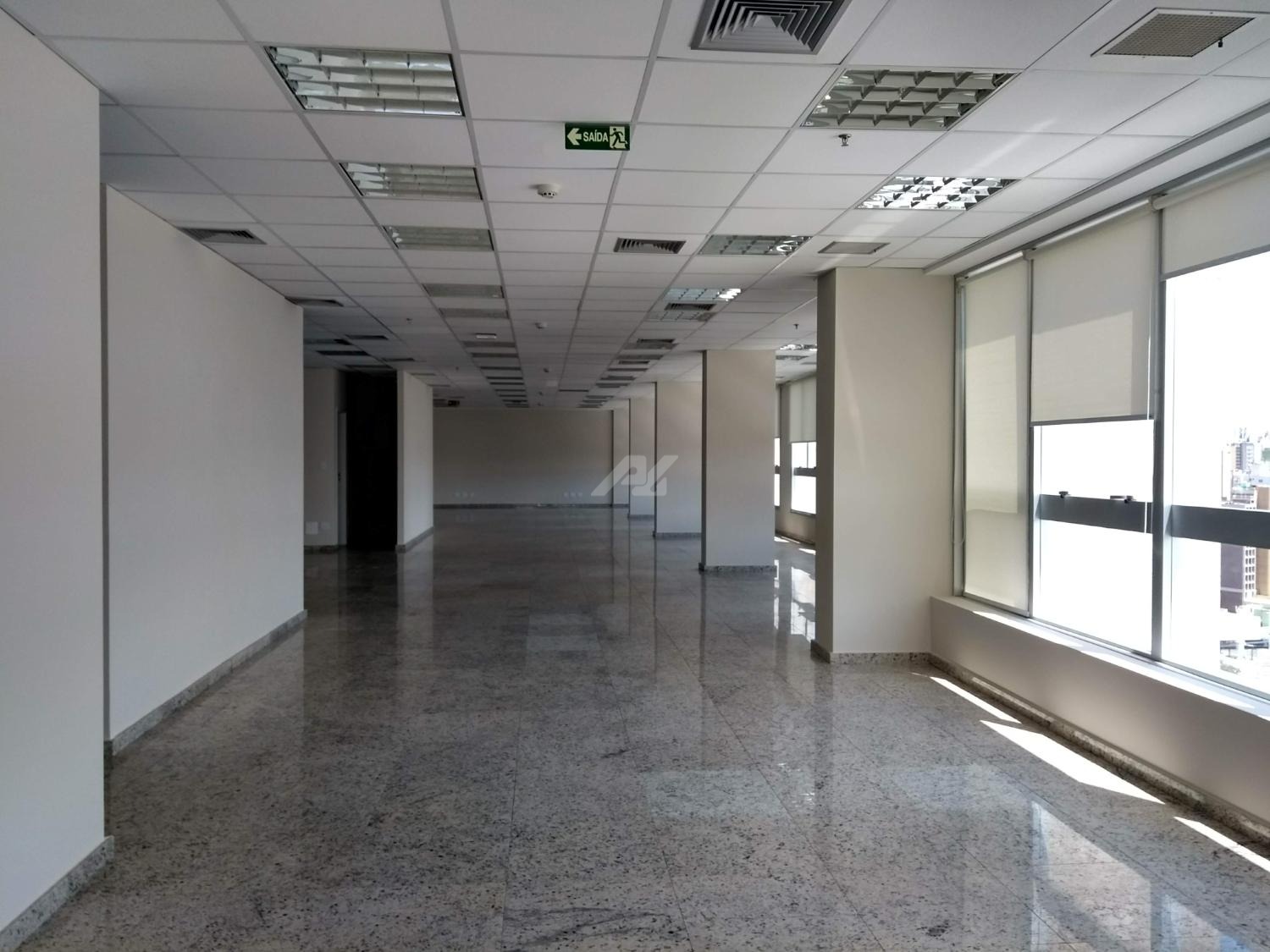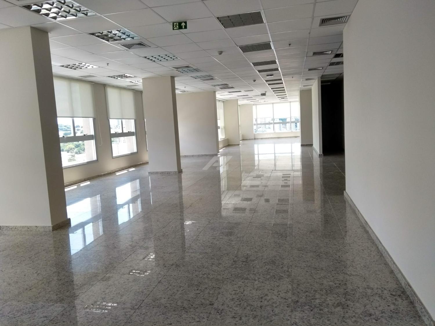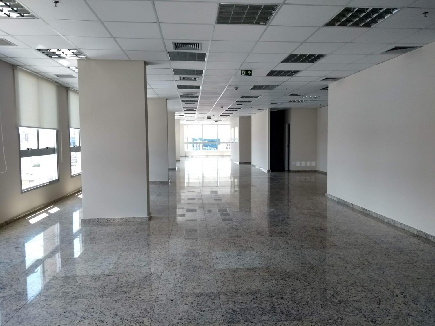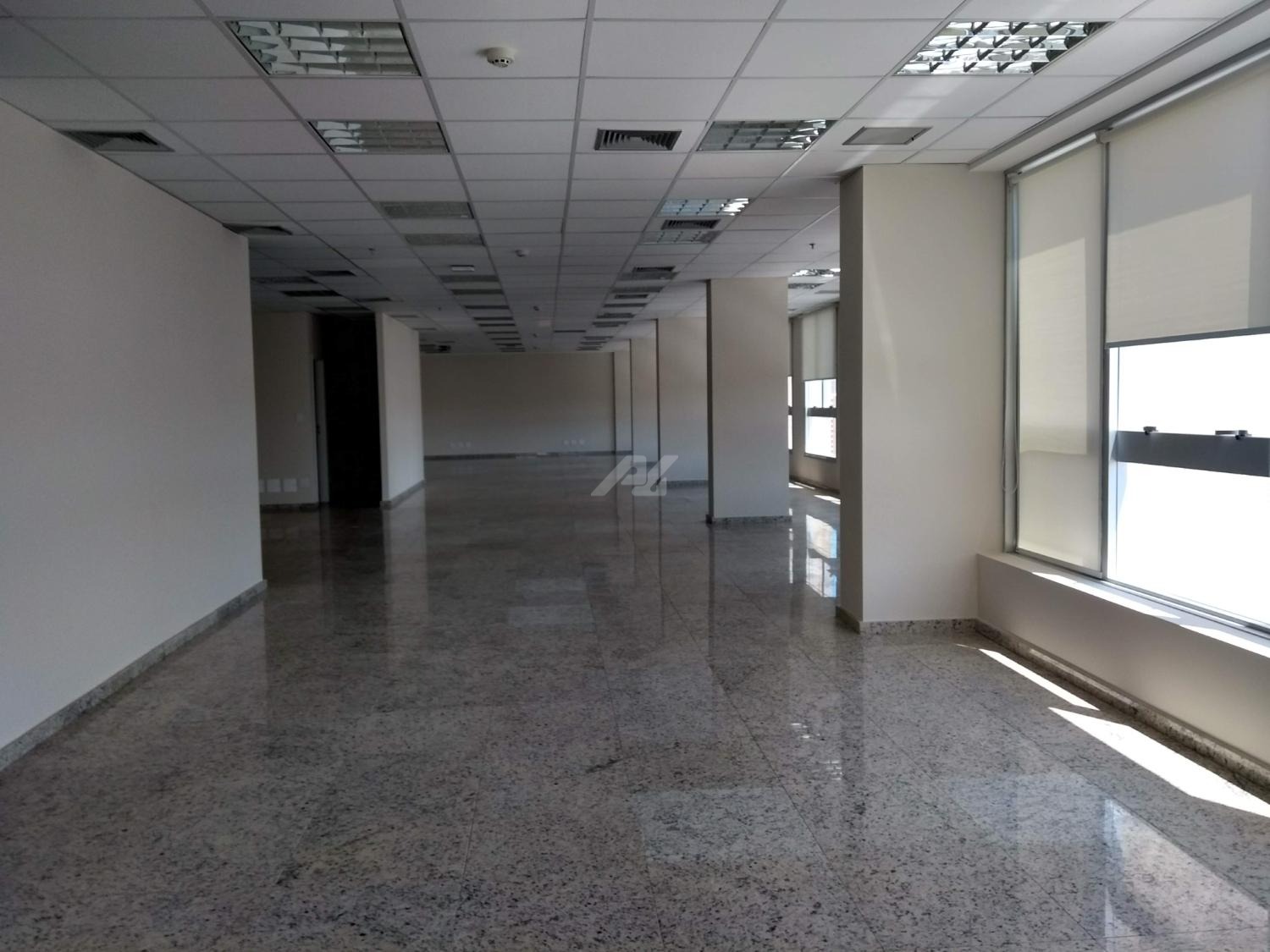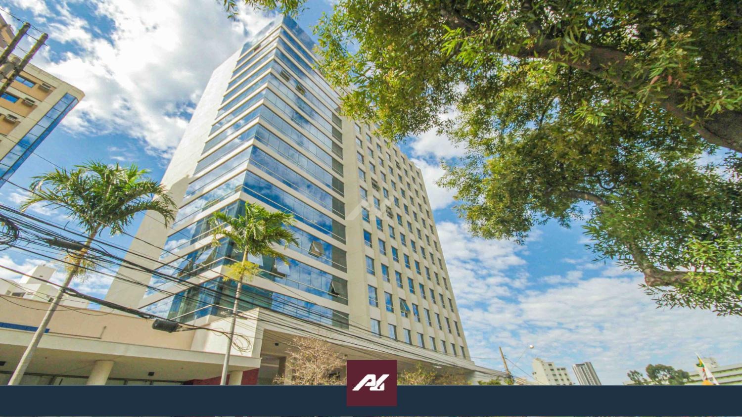 Laje com 8 salas, 9 banheiros, copa e 13 vagas de garagem, piso elevado, ar condicionado, luminárias.