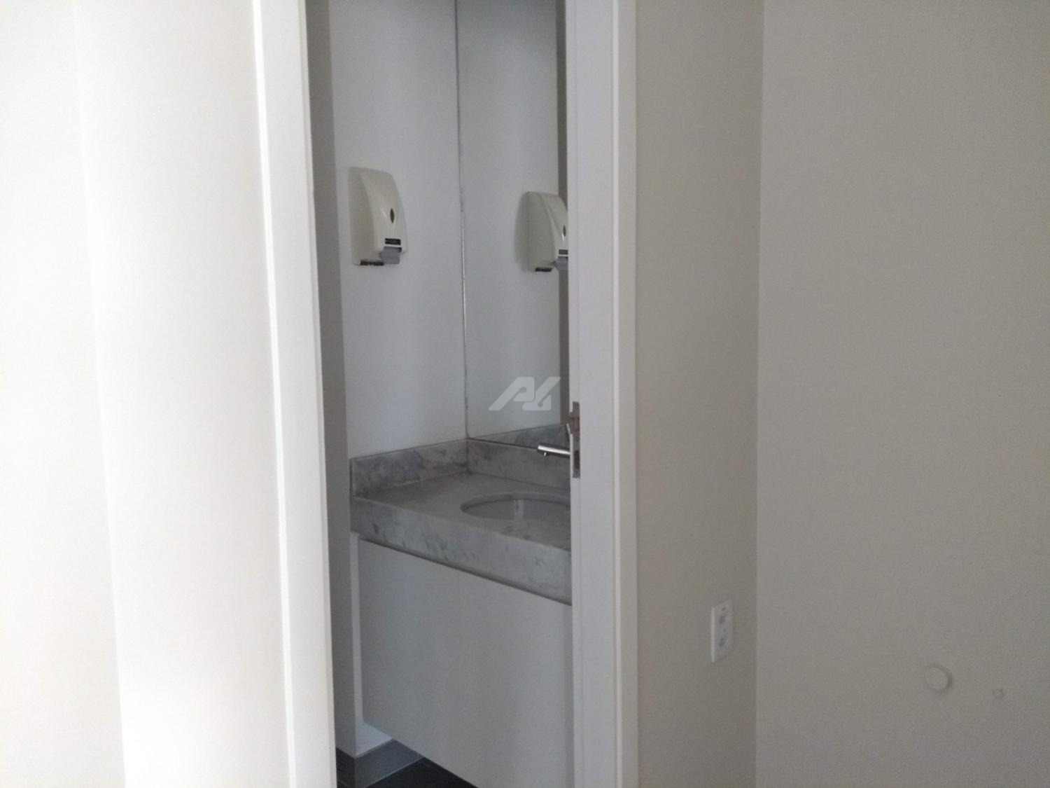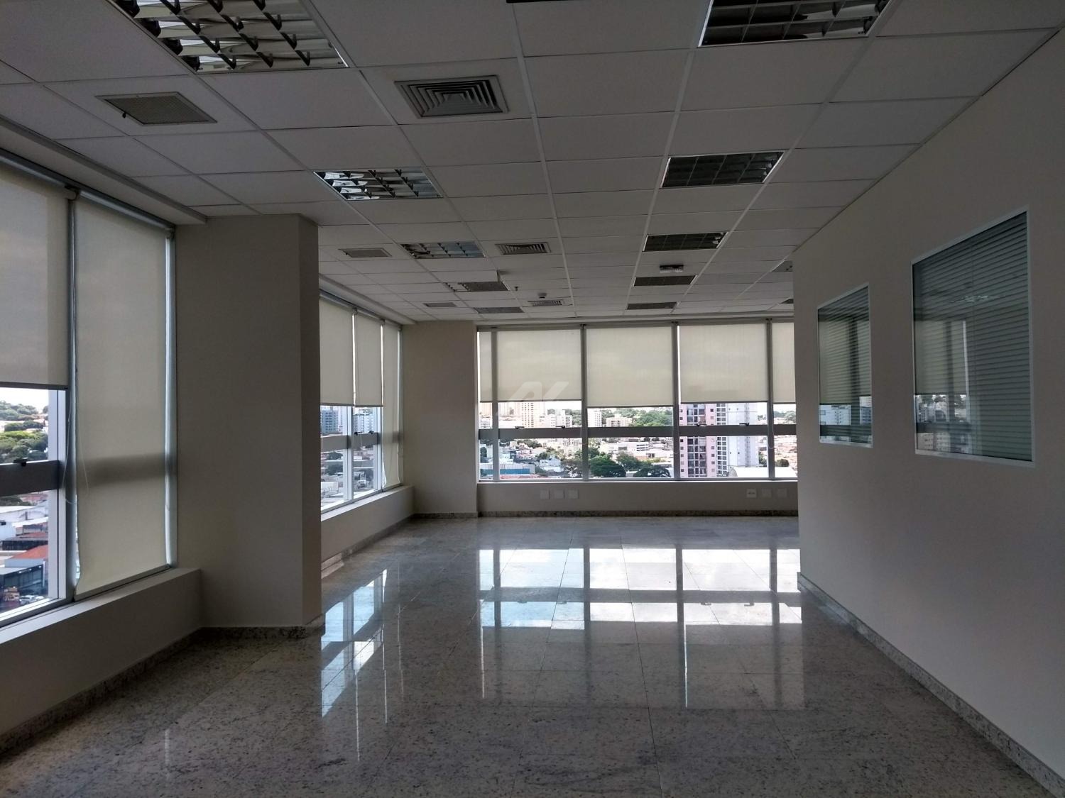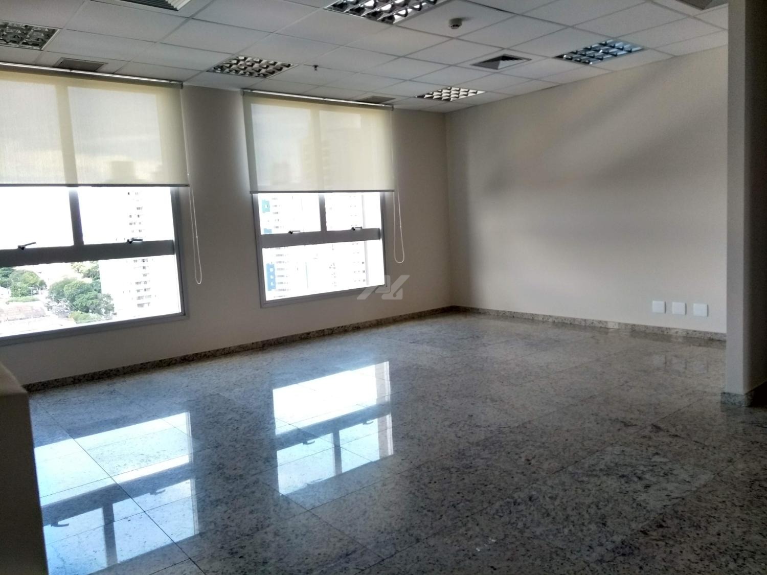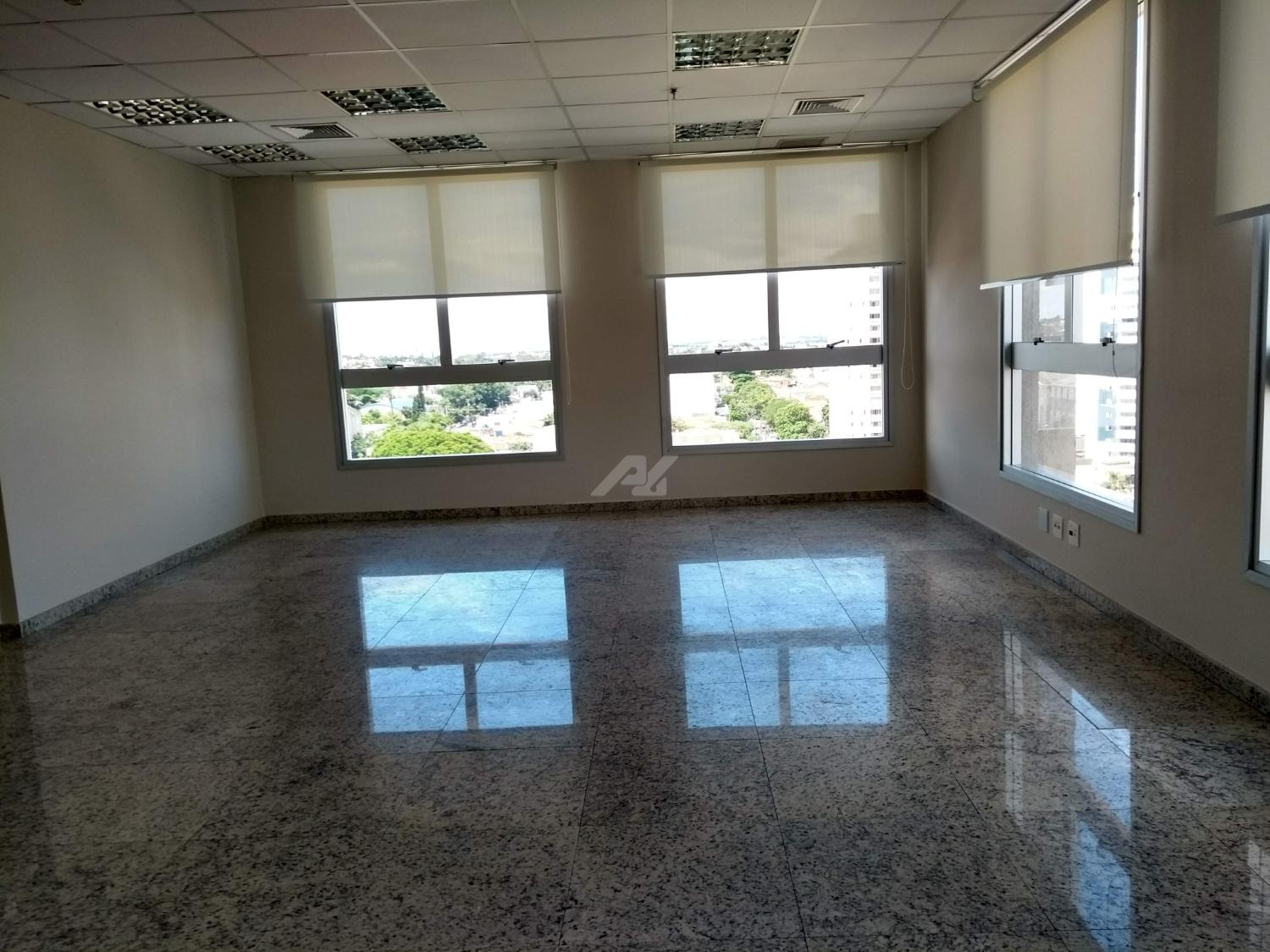 Laje com 8 salas, 9 banheiros, copa e 13 vagas de garagem, piso elevado, ar condicionado, luminárias.