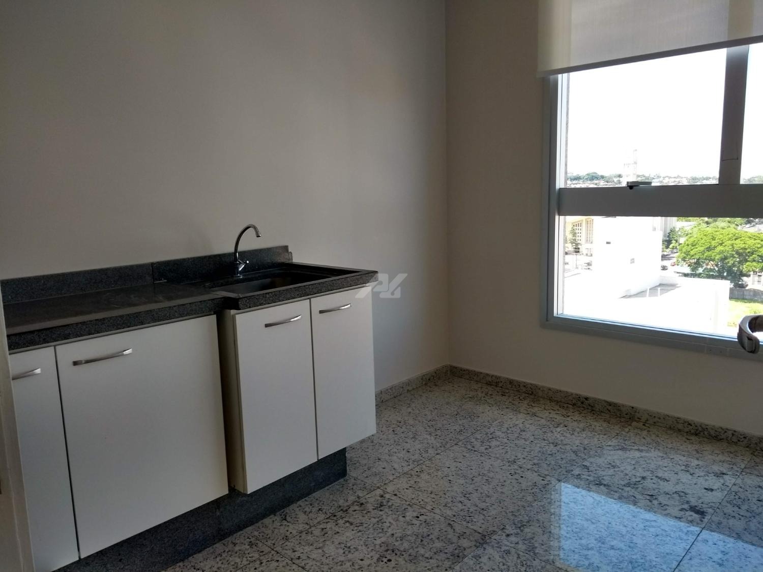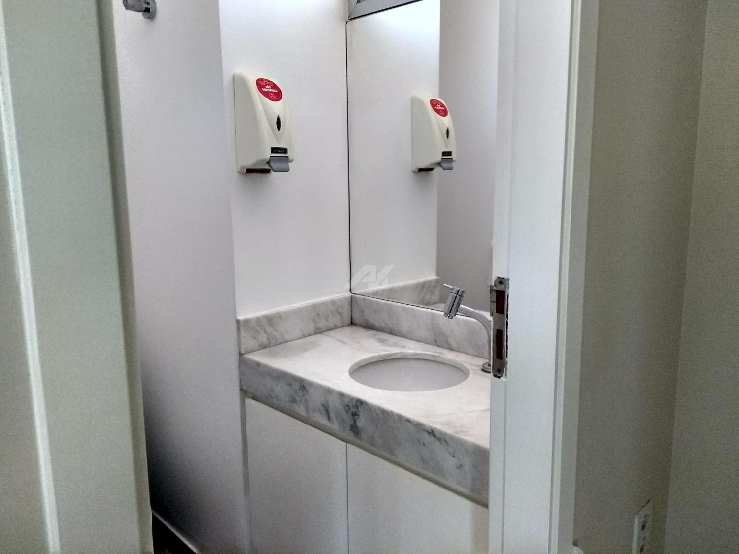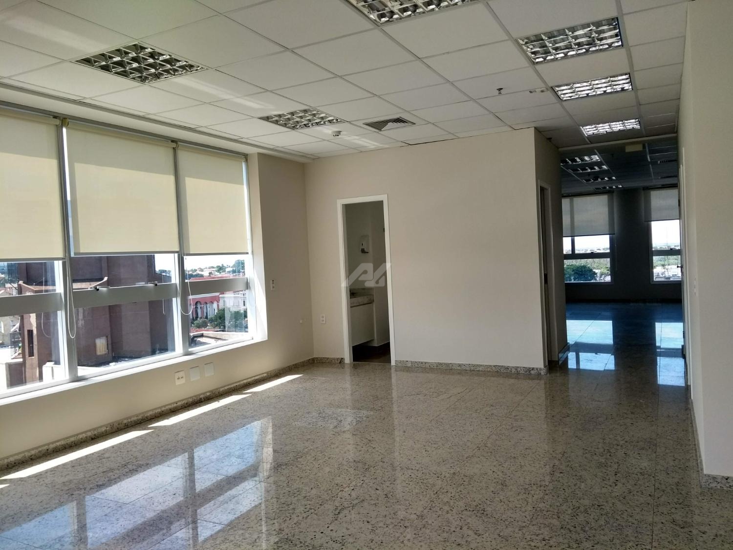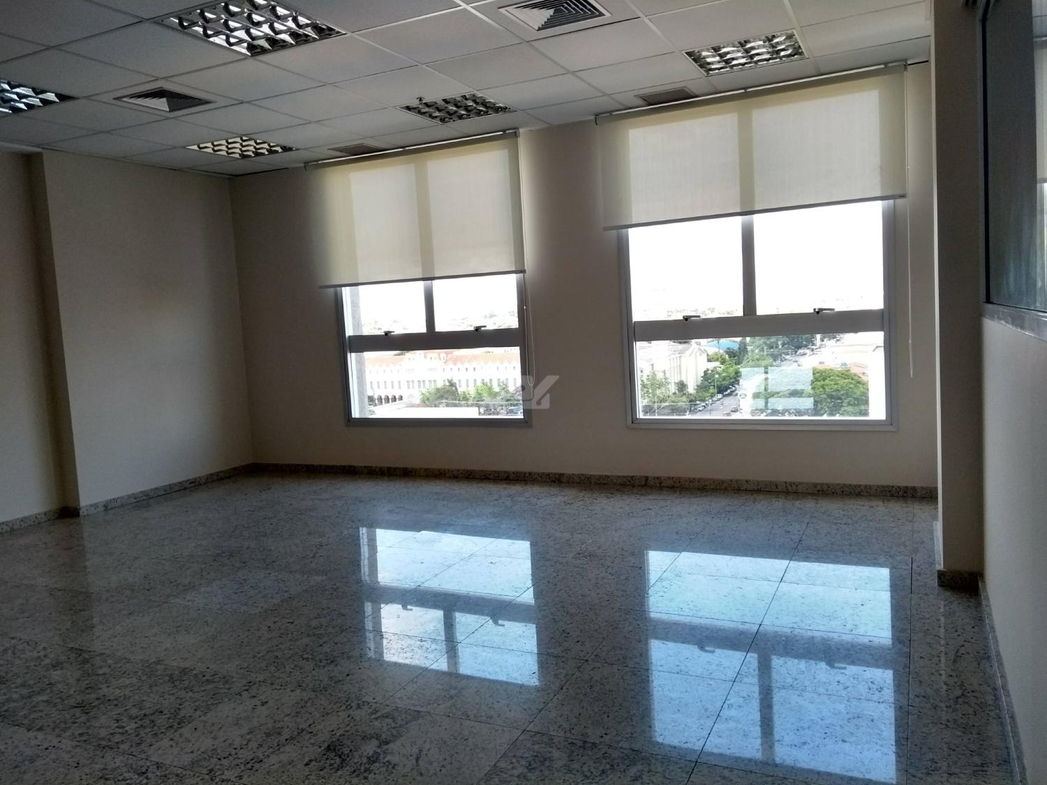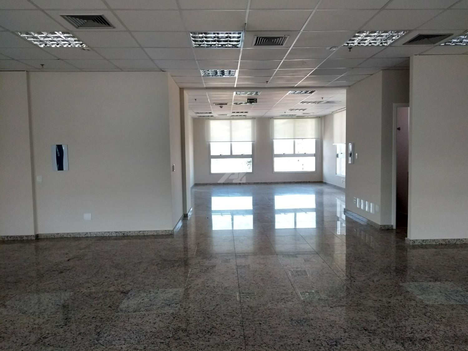 Laje com 8 salas, 9 banheiros, copa e 13 vagas de garagem, piso elevado, ar condicionado, luminárias.