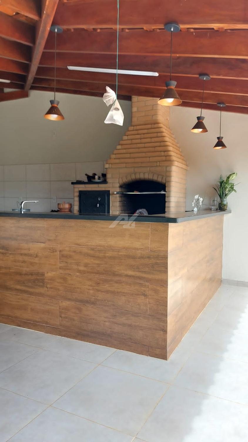 Casa menor 95 m² com 2 quartos, Sala, Cozinha, Banheiro, Garagem, Varanda com fogão a lenha e lavanderia.