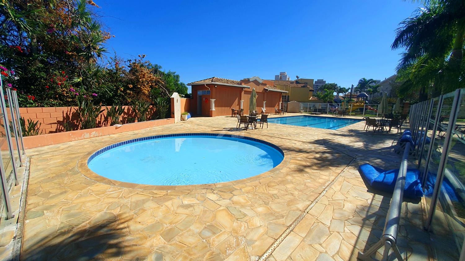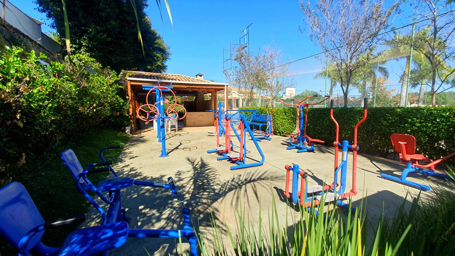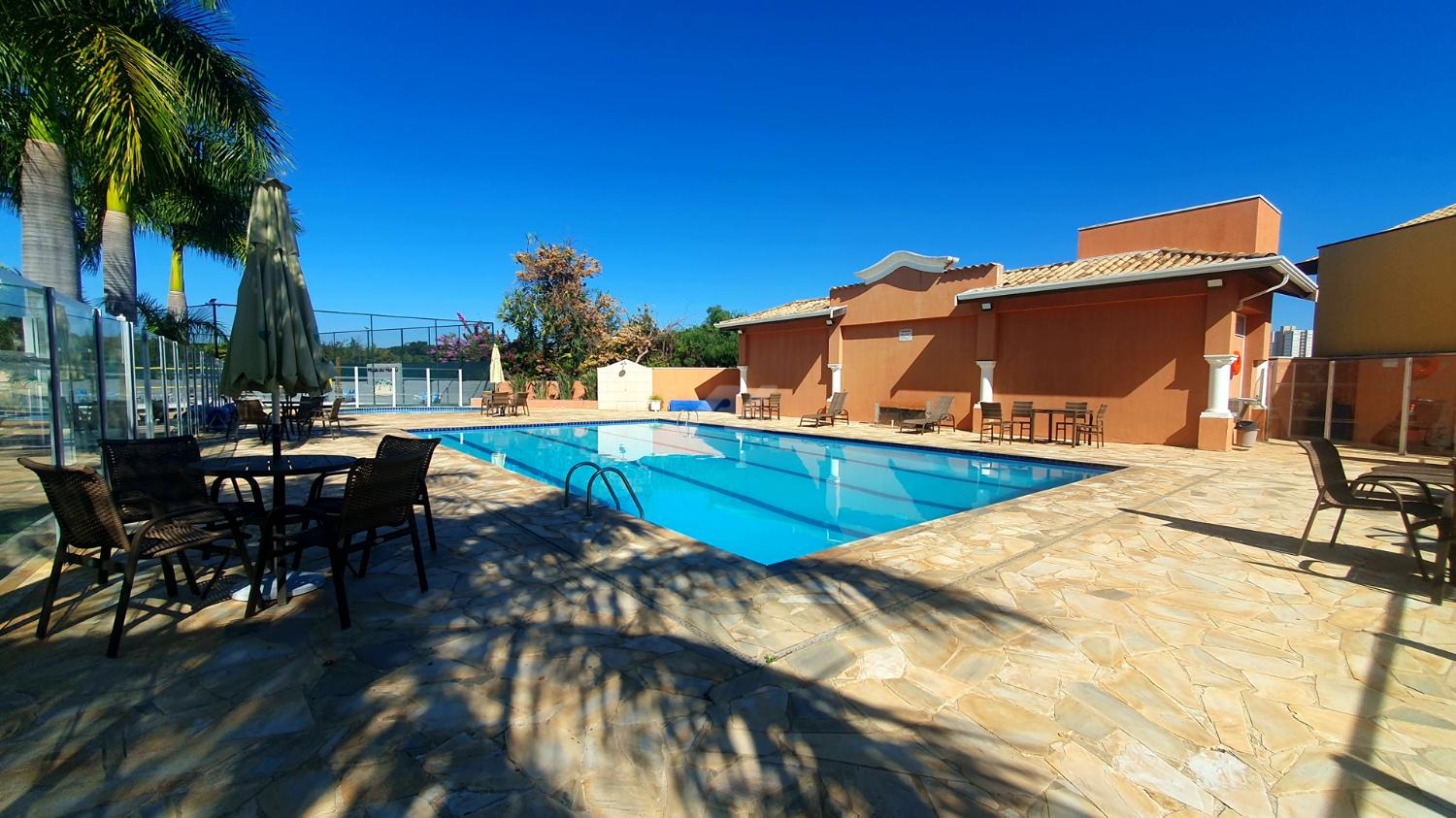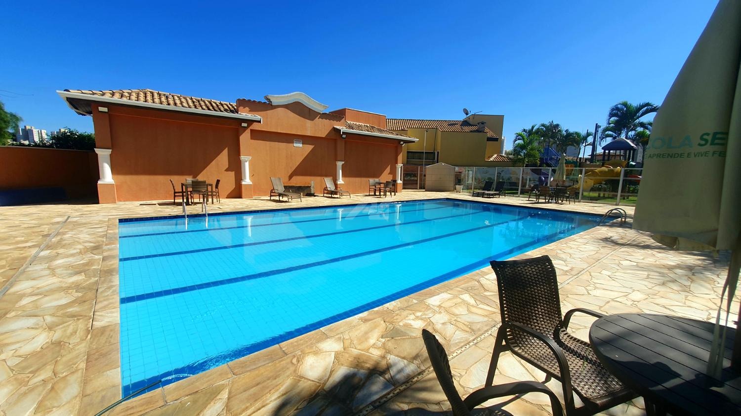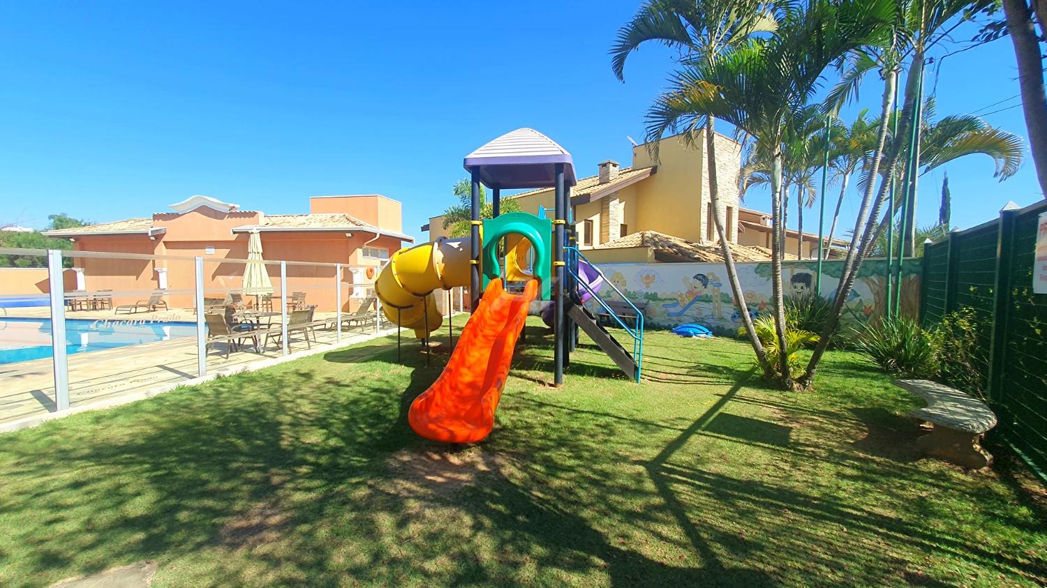 Condomínio de alto padrão com área verde, academia, salão de eventos, piscina, quadra poliesportiva e segurança 24 horas.