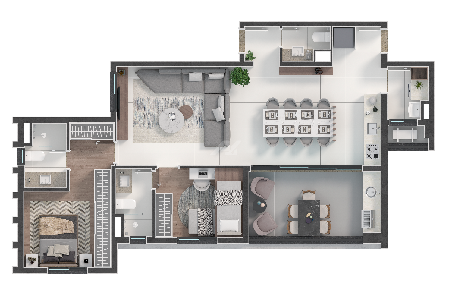 ✔️ Plantas inteligentes de 77m² (2 suítes) e 95m² (3 dormitórios, sendo 1 suíte)